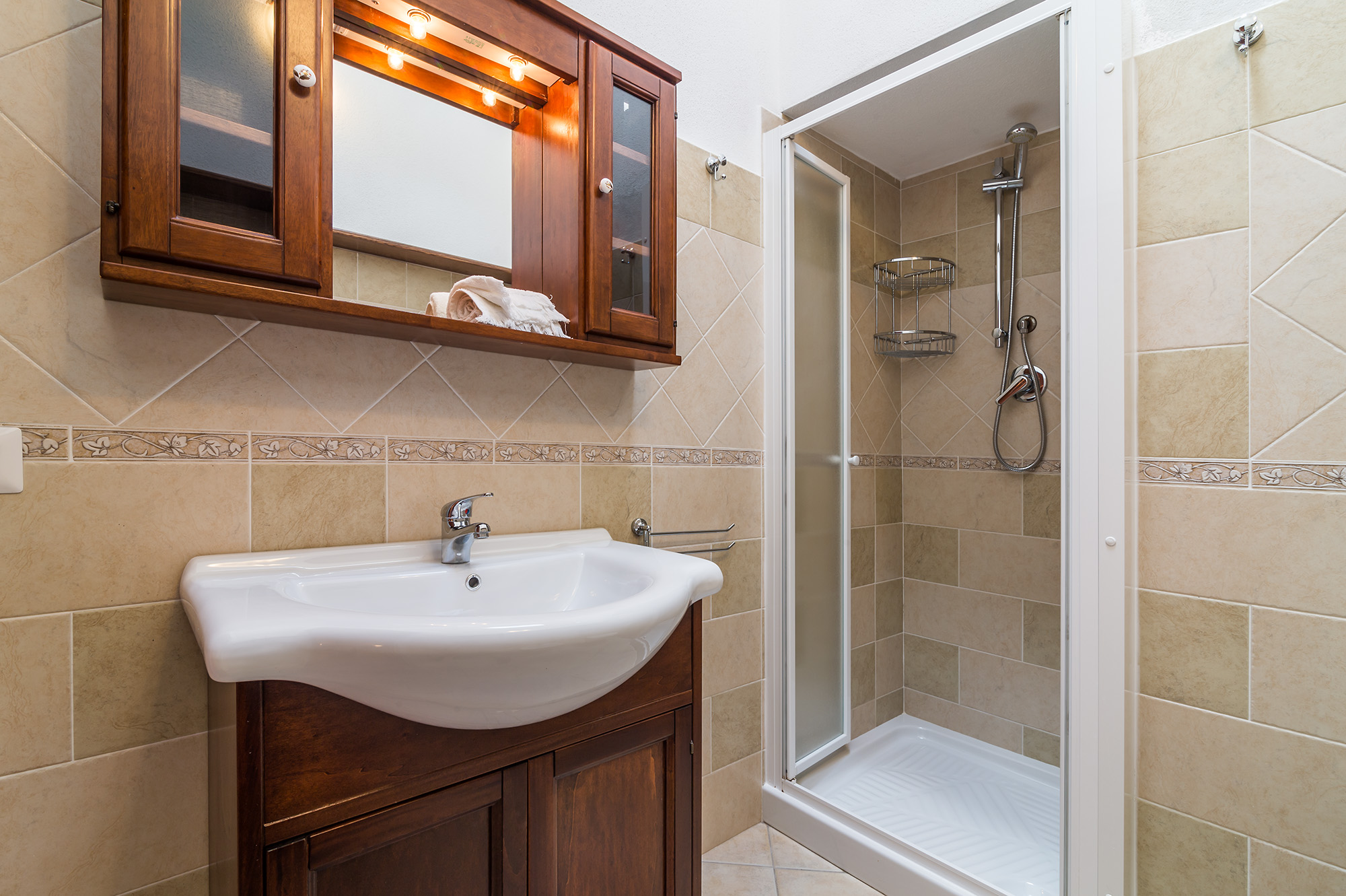 Het appartement, gelegen op de eerste verdieping, heeft een comfortabele indeling. Het bestaat uit een woonkamer met een kitchenette en een eenpersoonsslaapbank, een tweepersoonsslaapkamer, een tweede slaapkamer met twee eenpersoonsbedden en een badkamer. Een hoogtepunt van het pand is het ruime terras met uitzicht op zee, uitgerust met een tafel en stoelen om te ontspannen.