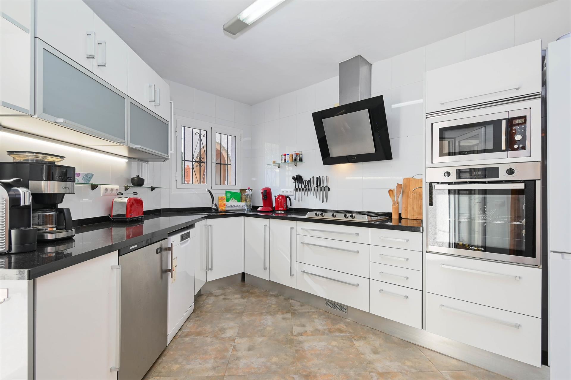 • Keuken met gasfornuis, elektrische oven, magnetron, vaatwasser, koel-vriescombinatie, koffiezetapparaat, waterkoker, mixer, broodrooster en citruspers