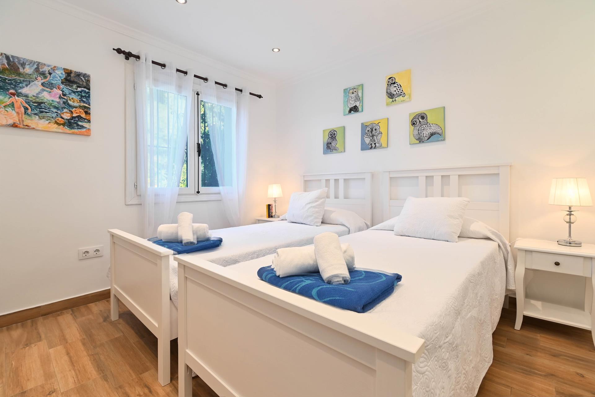 • Slaapkamer met tweepersoonsbed, ventilator en airconditioning