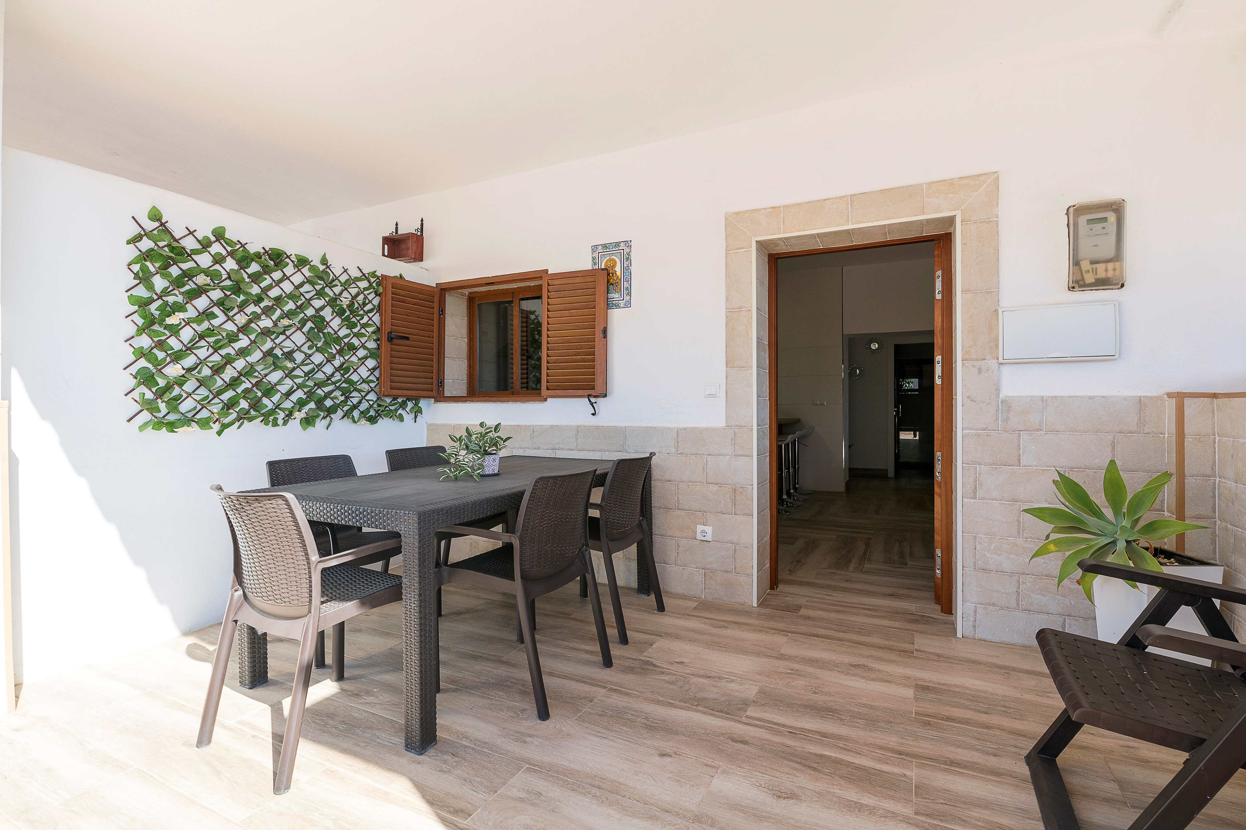 Binnen is het verdeeld over één verdieping en als u binnenkomt, vindt u de woonkamer die open staat voor de keuken. Het is uitgerust met tv en airconditioning en de keramische kookplaat beschikt over al het benodigde keukengerei zodat u kunt koken alsof u thuis bent. Er is een bar met vier krukken waar u kunt genieten van de heerlijke gerechten. Er is een wasmachine, strijkijzer en strijkplank. Als het tijd is om te slapen, zijn er twee slaapkamers met tweepersoonsbedden. Een badkamer met douche maakt uw verblijf compleet. Als u met uw baby reist, kunnen wij u voorzien van een kinderbedje en een kinderstoel.