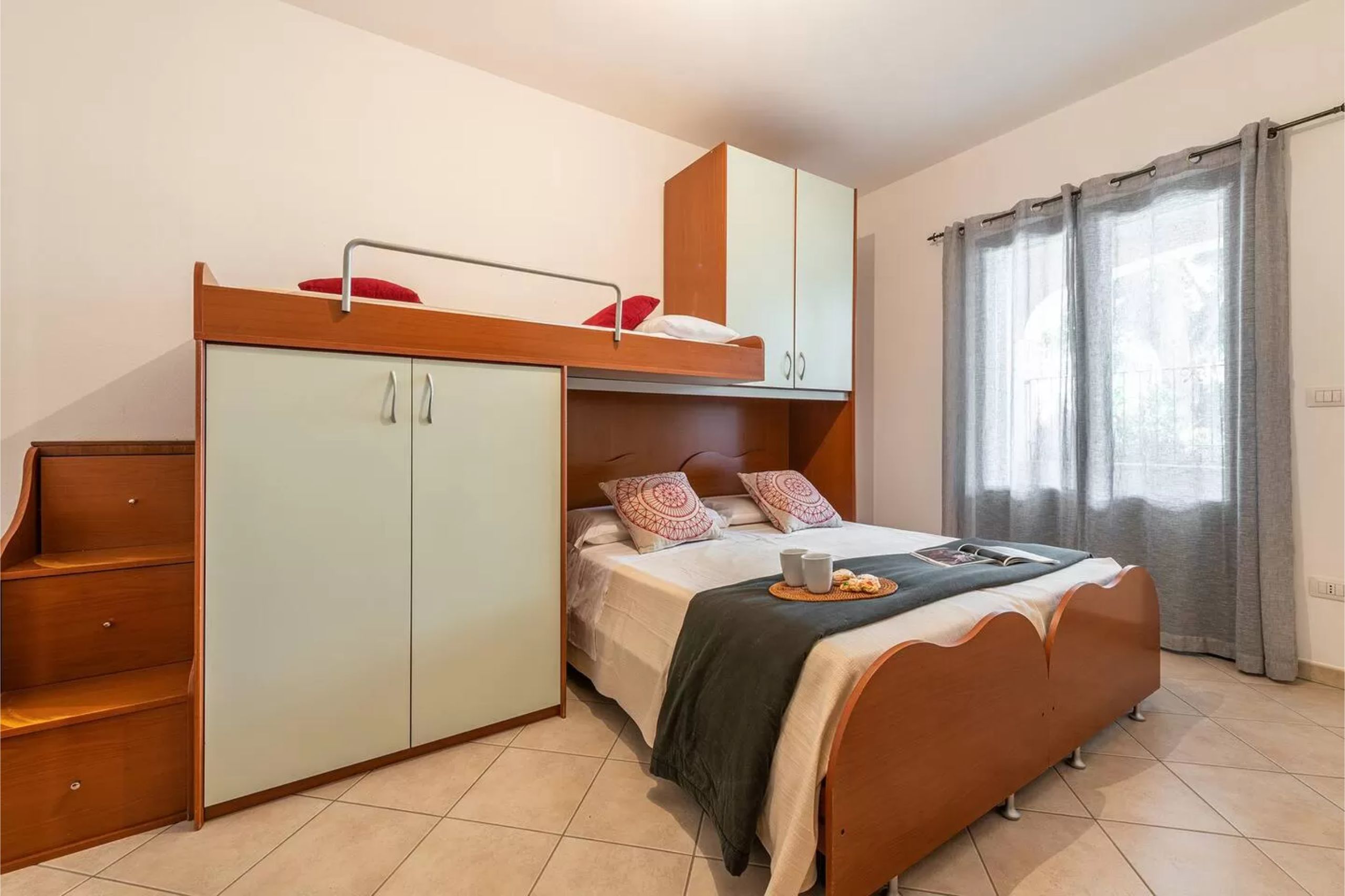 Toegankelijk vanaf de begane grond, biedt deze accommodatie een ruime woonkamer met een kitchenette, een tweepersoonskamer, een tweede slaapkamer met vier bedden en een badkamer. Door de trap af te dalen, vindt u een verfrissend semi-keldergebied met een extra tweepersoonskamer en een tweede badkamer.