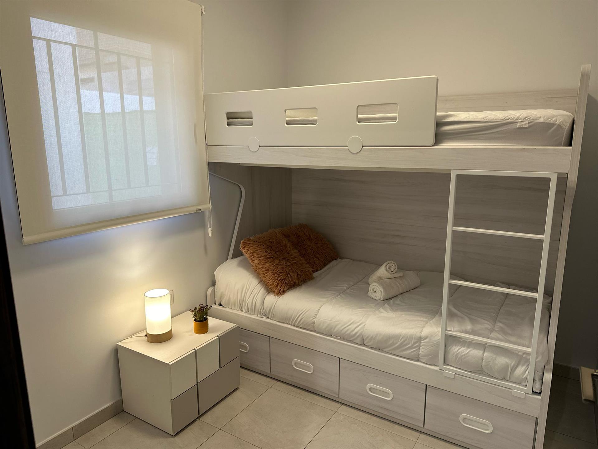 Slaapkamer met airconditioning, 2 stapelbedden (190 x 80 cm) en en-suite badkamer