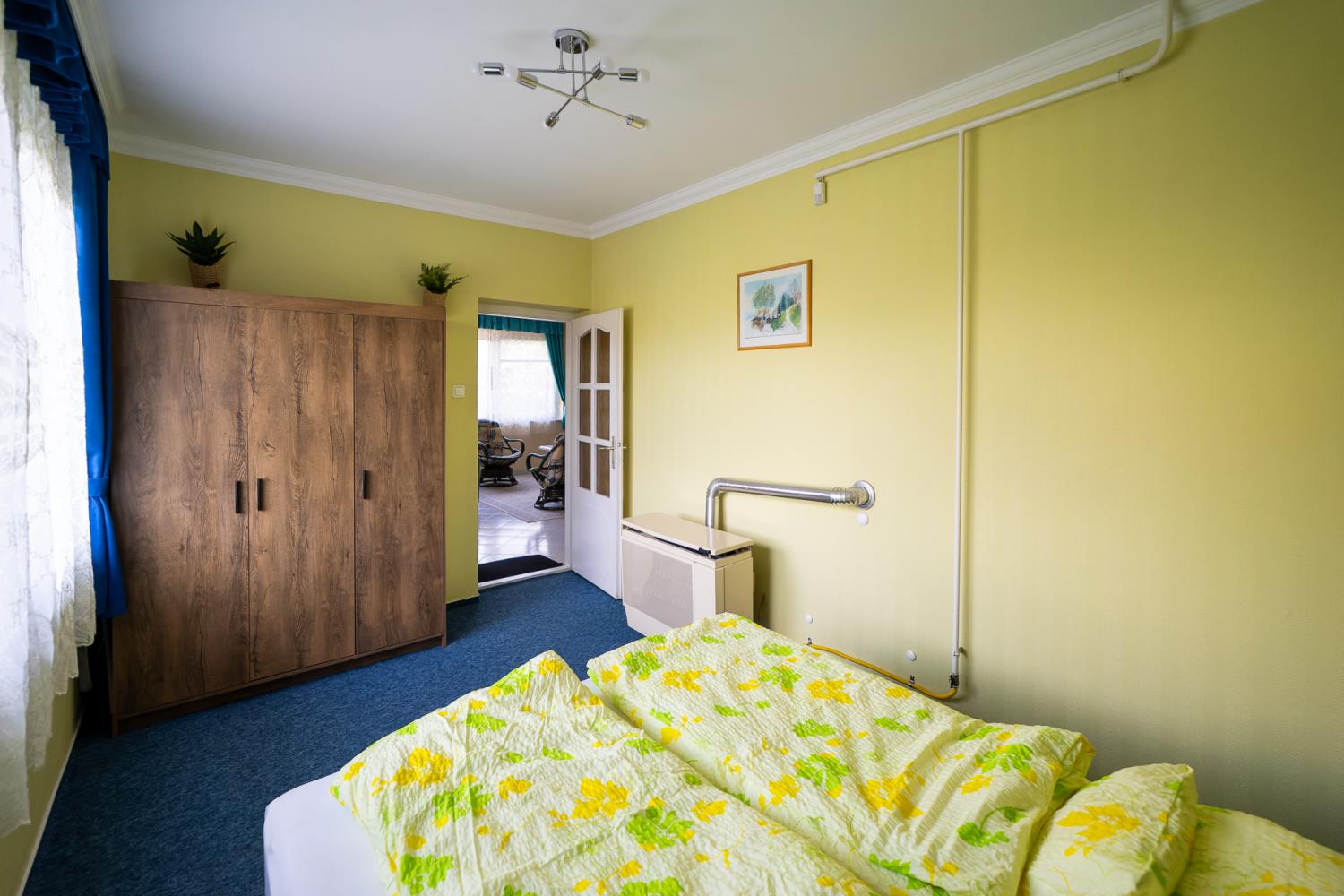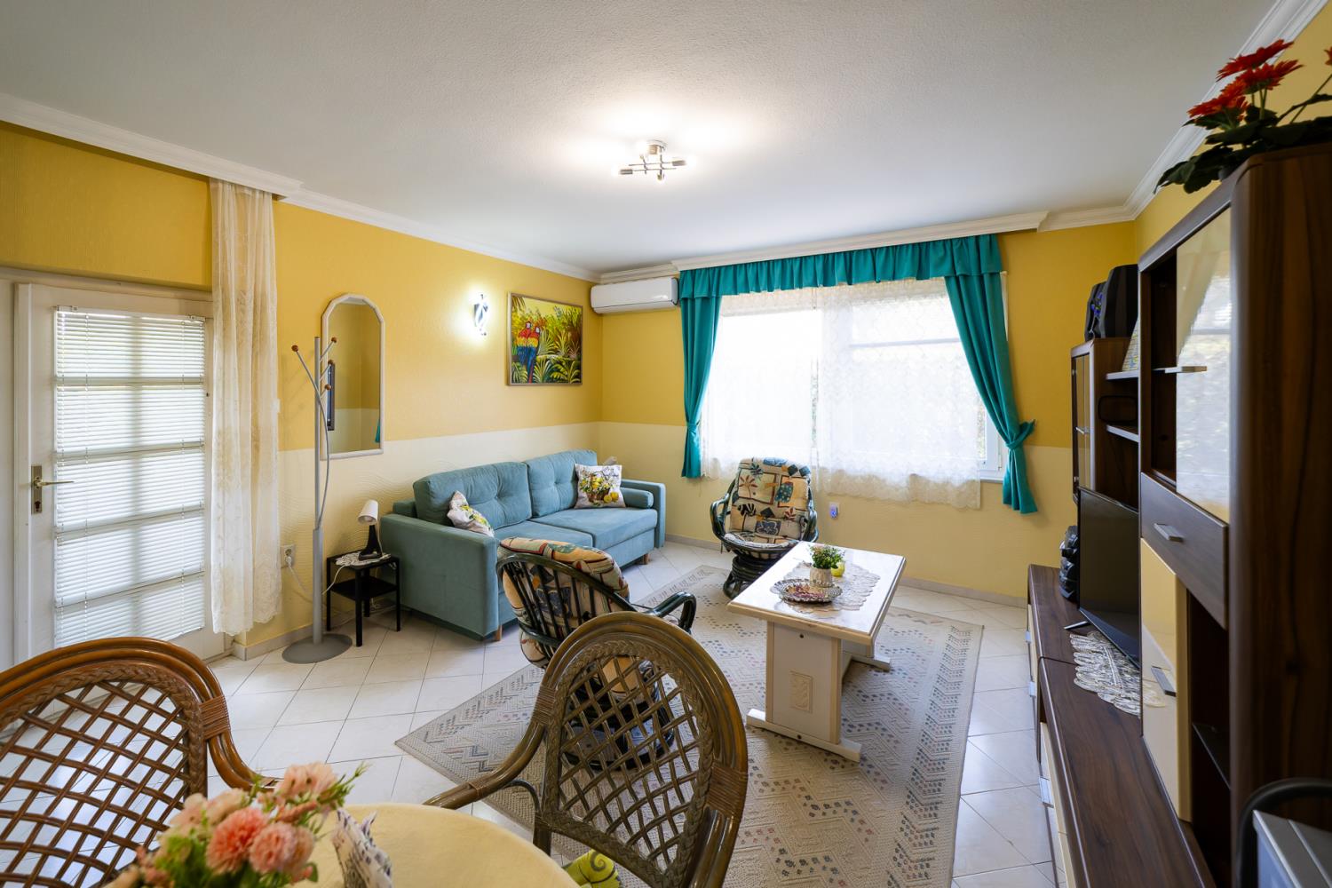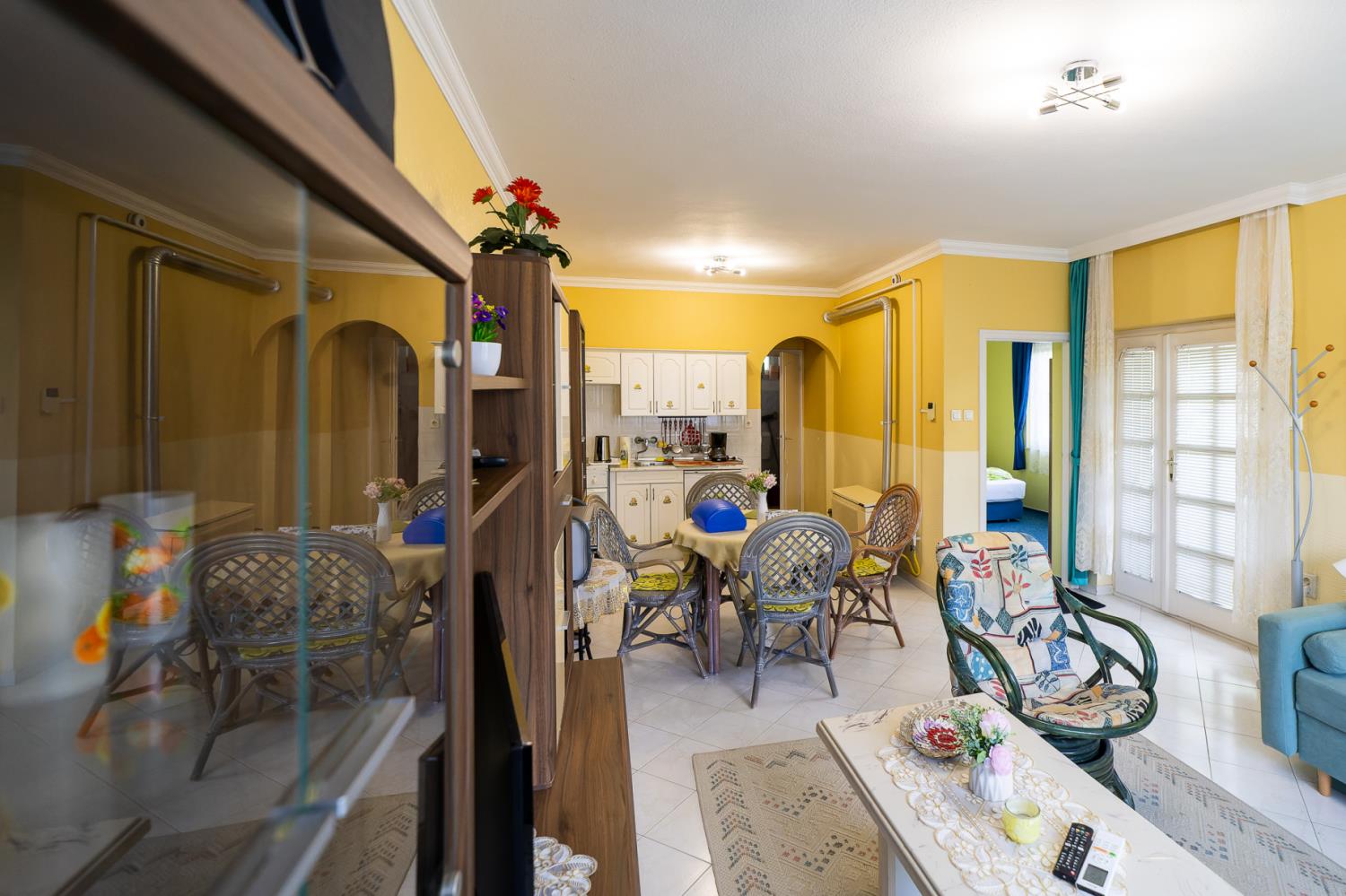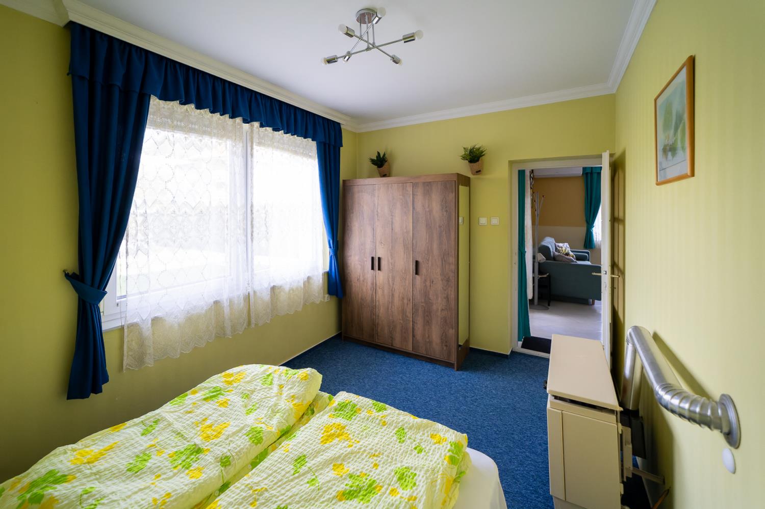 Dit appartement vindt u op de eerste verdieping van het huis, en het biedt uitzicht op de tuin aan. Dit is een ruime appartement en is geschikt voor 4 personen. De indeling van het appartement is als volgt: een slaapkamer met een tweepersoonsbed, een woonkamer met een slaapbank voor twee personen. Het appartement is gezellig ingericht. De keuken is compleet ingericht met koelkast, koffiezetapparaat, broosrooster, fornuis, porsslein, en andere faciliteiten. De badkamer is voorzien van douche, wasbak, toilet. In de woonkamer is er een TV, en het huis is voorzien van safe, centrale verwarming en alarminstallatie.