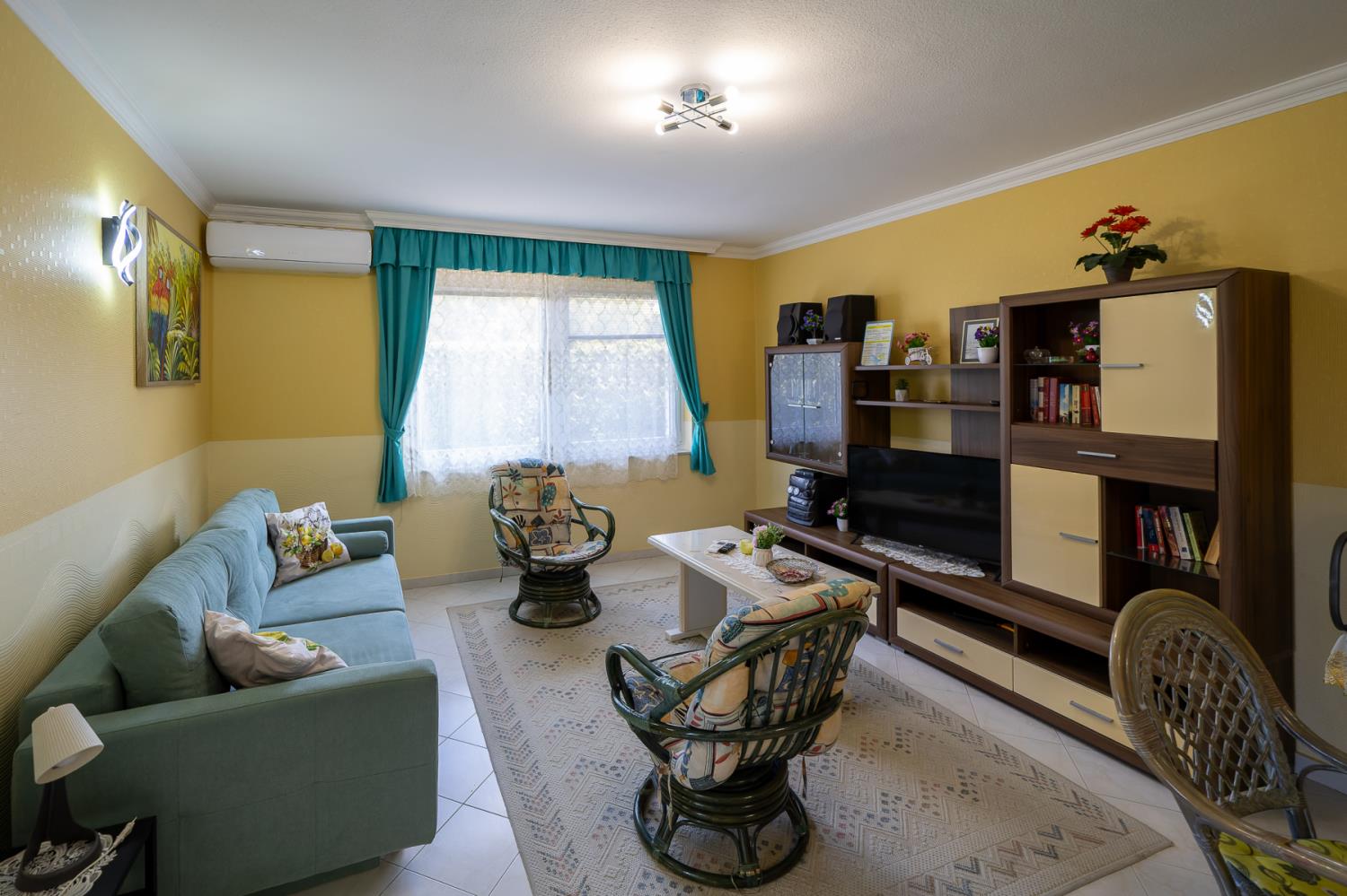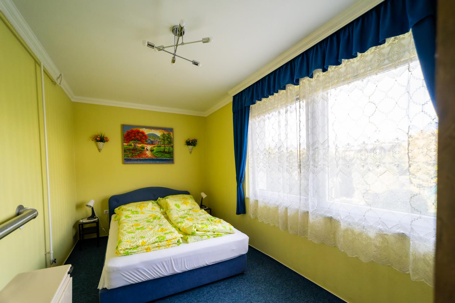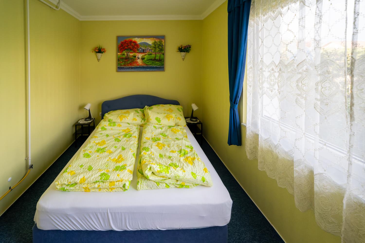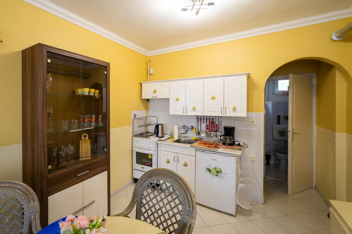 Dit appartement vindt u op de eerste verdieping van het huis, en het biedt uitzicht op de tuin aan. Dit is een ruime appartement en is geschikt voor 4 personen. De indeling van het appartement is als volgt: een slaapkamer met een tweepersoonsbed, een woonkamer met een slaapbank voor twee personen. Het appartement is gezellig ingericht. De keuken is compleet ingericht met koelkast, koffiezetapparaat, broosrooster, fornuis, porsslein, en andere faciliteiten. De badkamer is voorzien van douche, wasbak, toilet. In de woonkamer is er een TV, en het huis is voorzien van safe, centrale verwarming en alarminstallatie.
