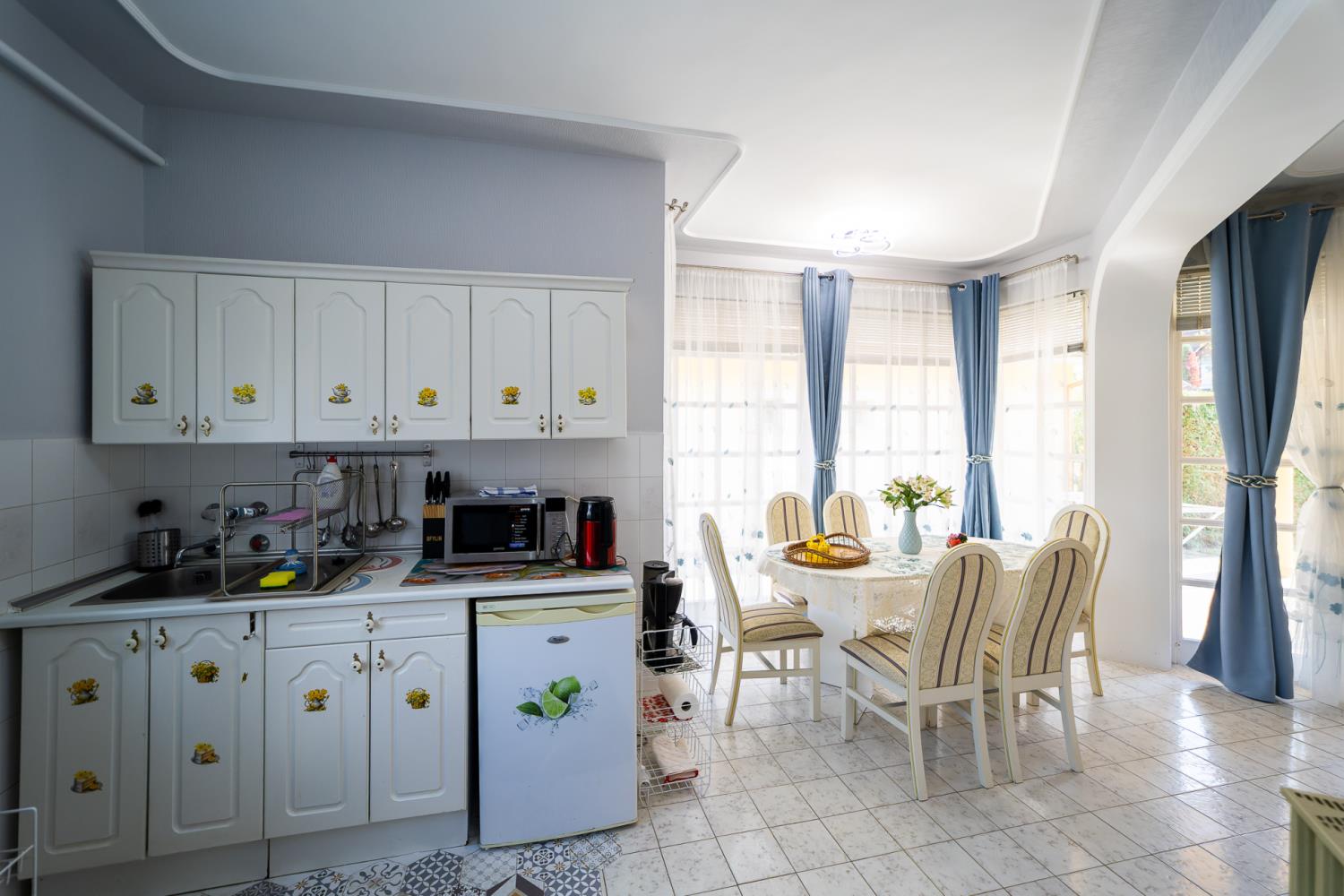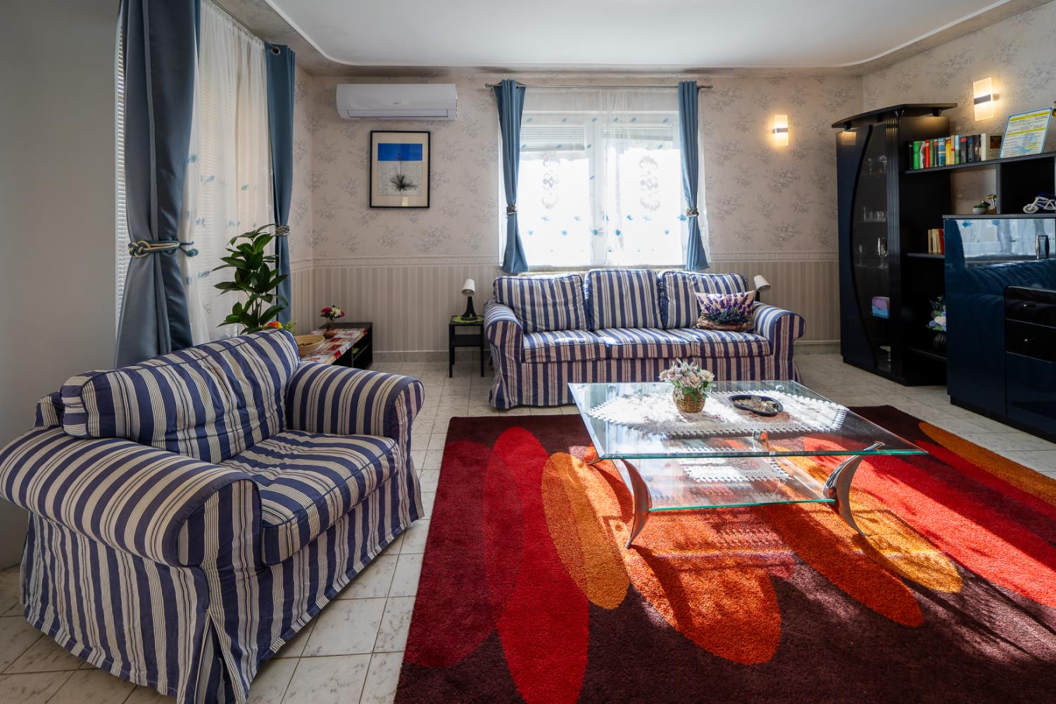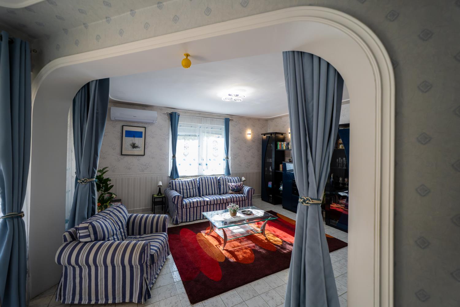 Dit is een huis met twee verdiepingen, het is geschikt voor 7 personen. In de eerste verdieping is er een ruime woonkamer met eethoek en een keuken. In de woonkamer ligt een slaapbank voor twee personen. De keuken is compleet ingericht met gasfornuis, magnetron, koelkast, deepvries, tafelgerei, tafelkleed, toilet, wasbak en bidet. Op de eerste verdieping zijn er twee slaapkamers een van ze met een grote bed de andere met drie eenpersoonsbedden. De badkamer ligt tussen de twee slaapkamers, en het beschikt over douche, wasbak en toilet. Het huis is voorzien van centrale verwarming daardoor kan het ook in de winter gehuurd worden.