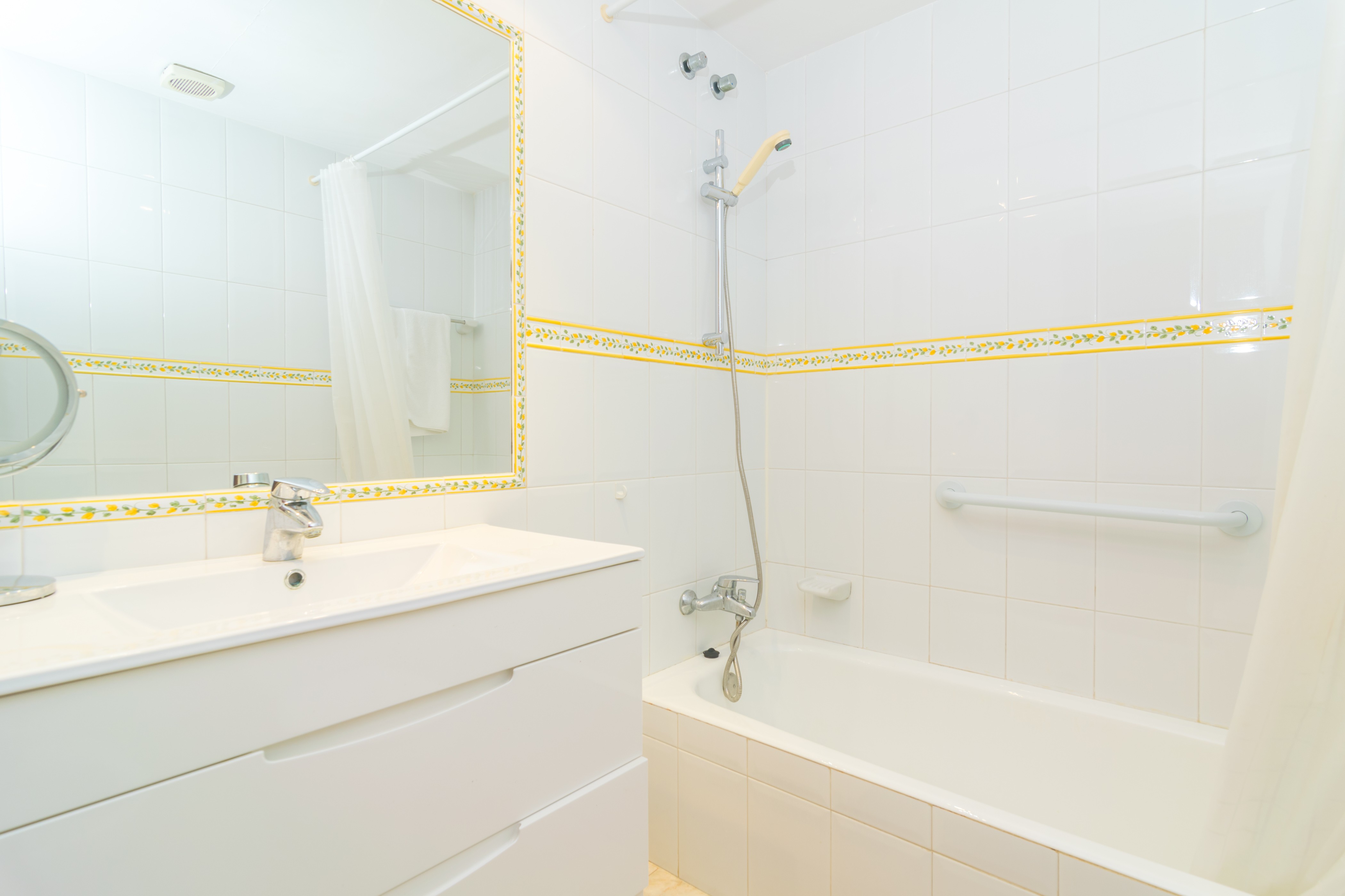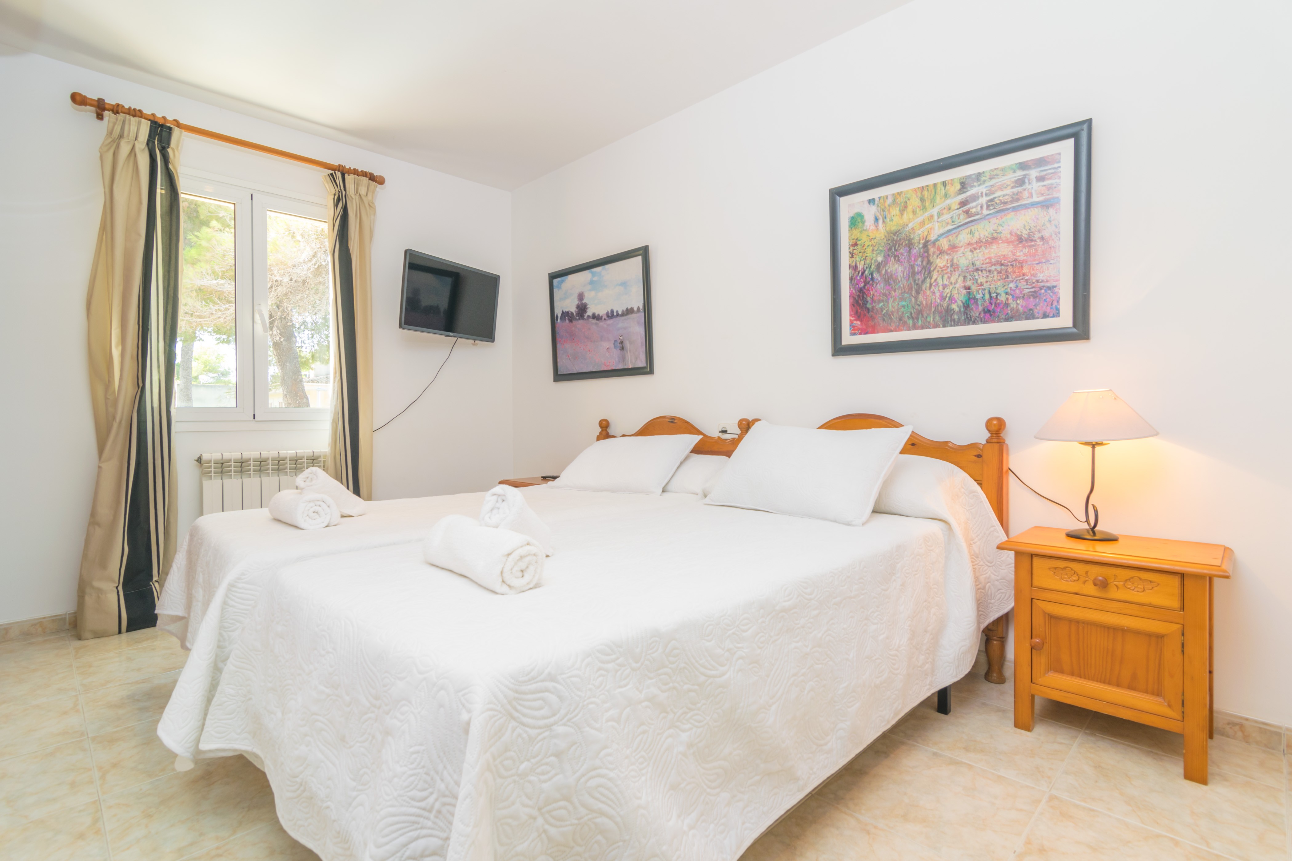 Het appartement heeft drie slaapkamers met airconditioning: een met een tweepersoonsbed en een eigen badkamer met een bad, een andere met twee eenpersoonsbedden en een derde met een stapelbed. Als u met een baby reist, kunnen we een kinderbedje en kinderstoel leveren. Een tweede badkamer, uitgerust met een douche, bedient de rest van het appartement. Er is ook een aparte wasruimte met een wasmachine, droger, strijkijzer en strijkplank. Tot slot is het appartement overal voorzien van centrale verwarming op olie.