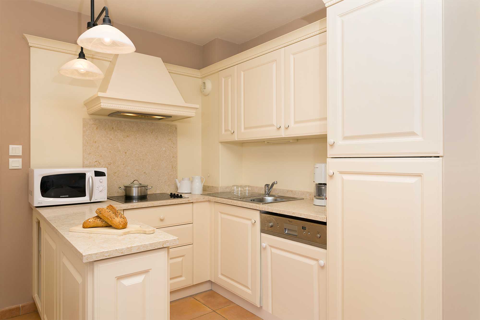 Smaakvol ingericht en zeer comfortabel beschikt het appartement over een woonkamer met een uitschuifbare slaapbank voor twee personen en een extra bed, een volledig uitgeruste keuken met vaatwasser, koelkast, keramische kookplaat en magnetron, en een privébalkon of terras (sommige appartementen bieden Wi-Fi).