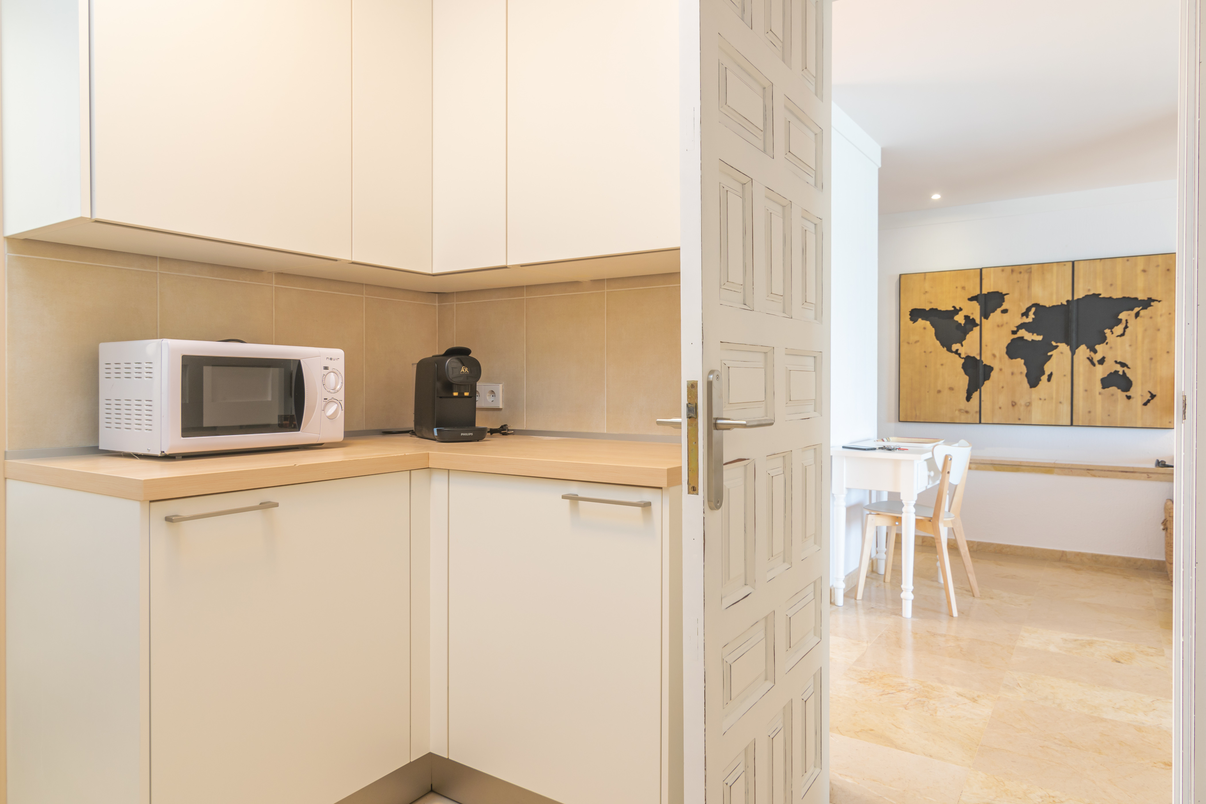 Het interieur van het appartement, met twee verdiepingen en gedecoreerd met verfijnde smaak, is ontworpen om u de rust te bieden die u verdient. Op de begane grond is er een ruime en lichte woon-eetkamer met AC en Smart TV, perfect om uw avonden te verlengen. De keuken is onafhankelijk en heeft een keramische kookplaat en alle benodigde keukengerei om comfortabel te koken. In het huis is er een wasmachine, strijkijzer en strijkplank. Op deze verdieping bevindt zich ook een toilet. Via een trap komt u op de verdieping waar zich de vier slaapkamers bevinden, allen voorzien van airconditioning. Drie van hen hebben twee eenpersoonsbedden -een van hen heeft toegang tot een balkon-, terwijl de laatste een tweepersoonsbed en een en-suite badkamer met douche heeft. Een andere onafhankelijke badkamer met ligbad bedient deze verdieping. Het appartement is tevens voorzien van centrale verwarming. Als u met uw baby reist, kunnen we een wieg en een kinderstoel leveren.