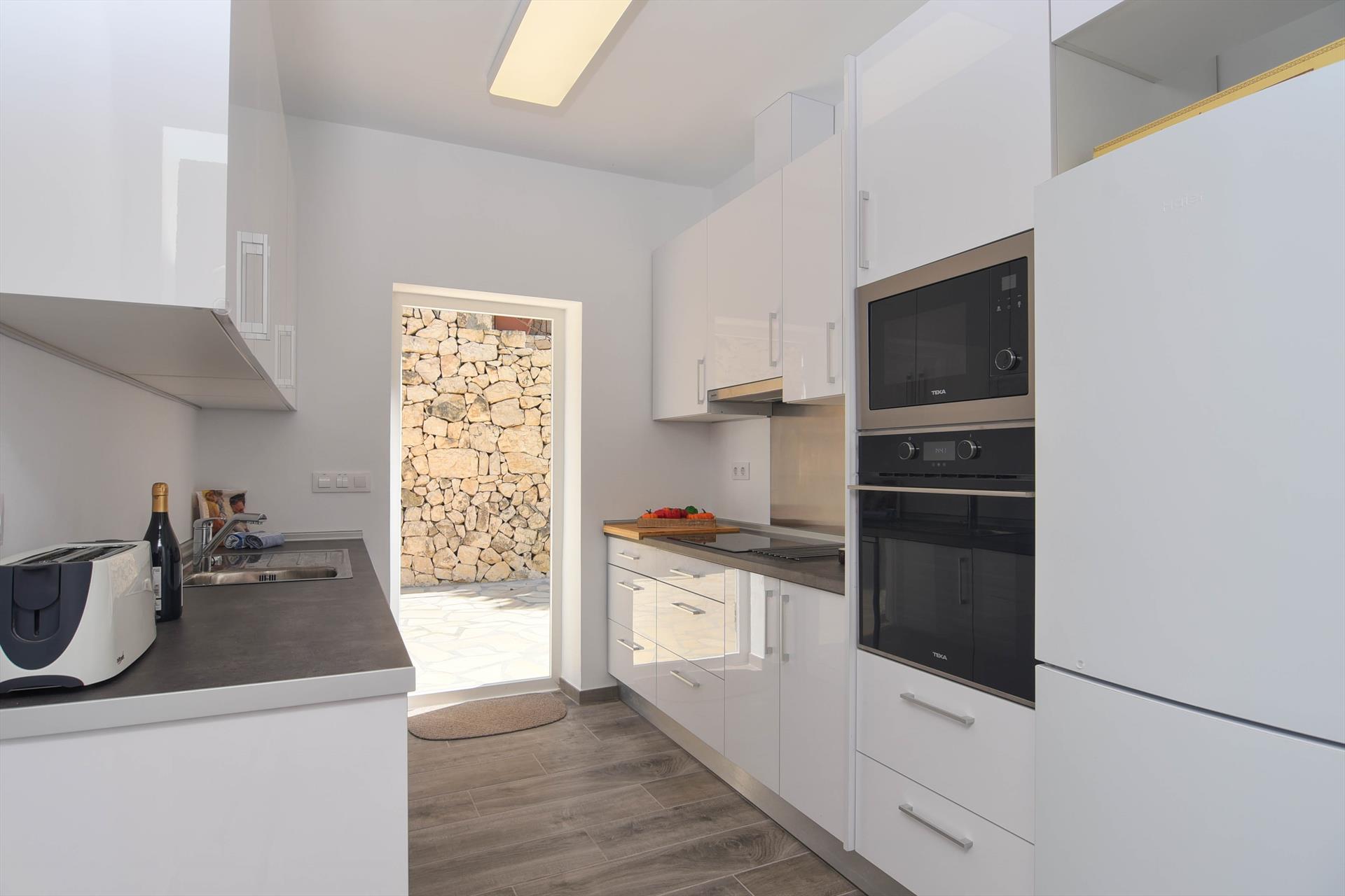 • Woonkeuken met elektrisch fornuis, elektrische oven, magnetron, vaatwasser, koel-vriescombinatie, koffiezetapparaat, waterkoker, mixer, broodrooster en citruspers