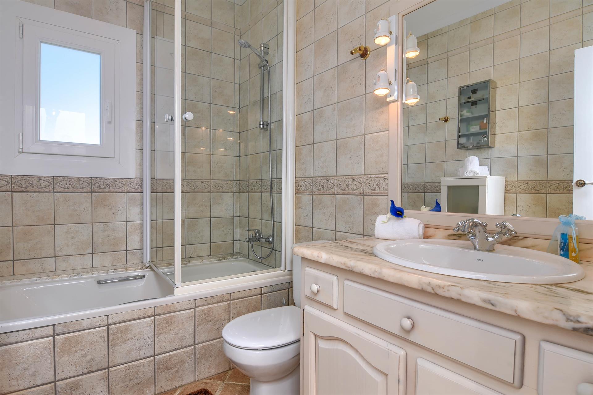 • ensuite badkamer met enkele wastafel, douchebad en toilet