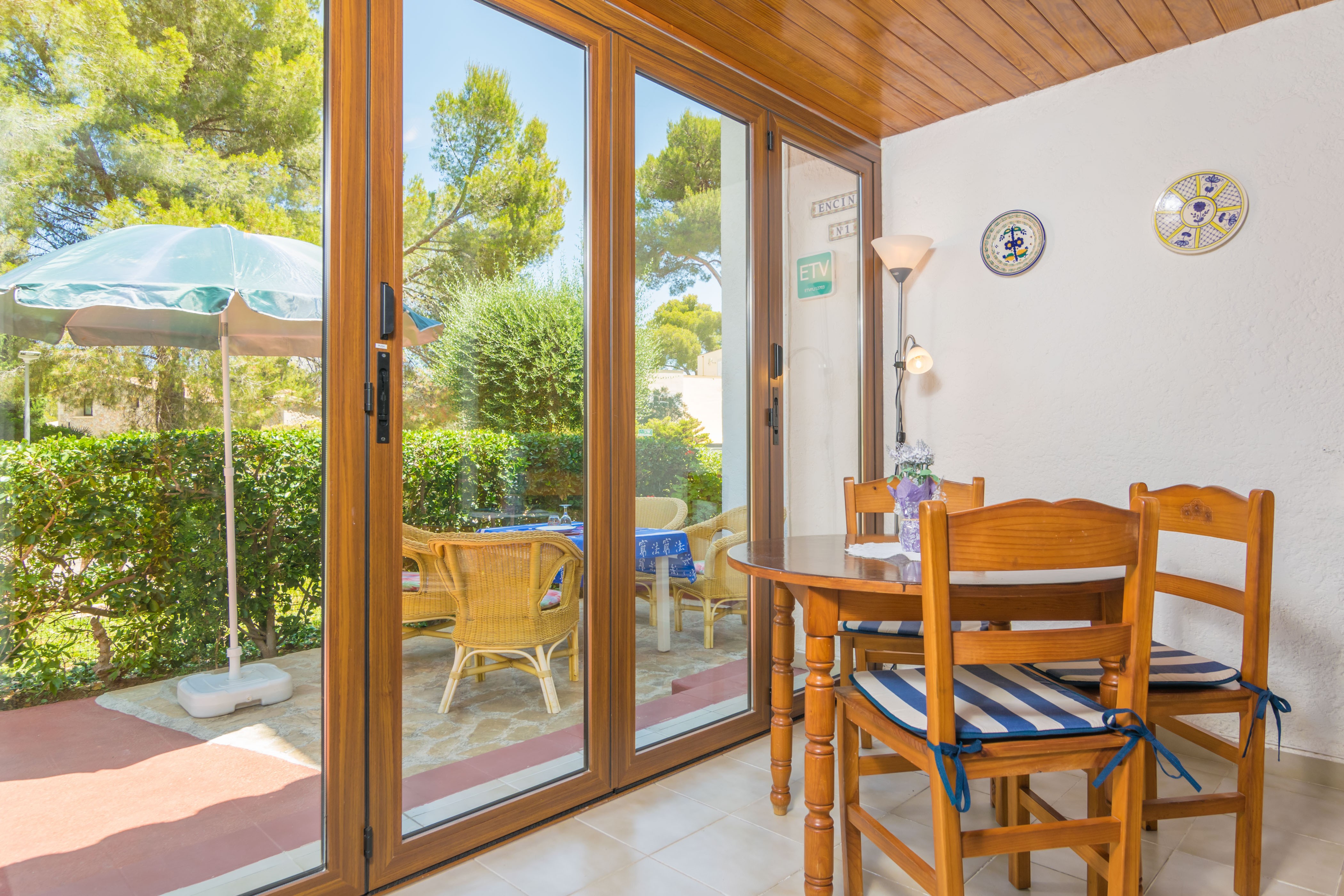 Binnen vind je de pure Mallorcaanse stijl rondom de 45 m2. De gezellige zitkamer heeft airconditioning. Je vindt er een tv en dvd- en cd-spelers, zodat je lekker kunt uitrusten en je kunt vermaken. Hier vind je de eenvoudige keuken, uitgerust met een keramische kookplaat. Deze kamer leidt naar de glazen eethoek, met directe toegang tot het terras, zodat je binnen van je gerechten kunt genieten als je dat liever doet. Er is een slaapkamer met twee aparte bedden om uit te rusten, evenals een kast en ruimte voor een kinderbedje als je met je baby reist. Tot slot is er de badkamer met douche, waar je ook de wasmachine, het strijkijzer en de strijkplank vindt.