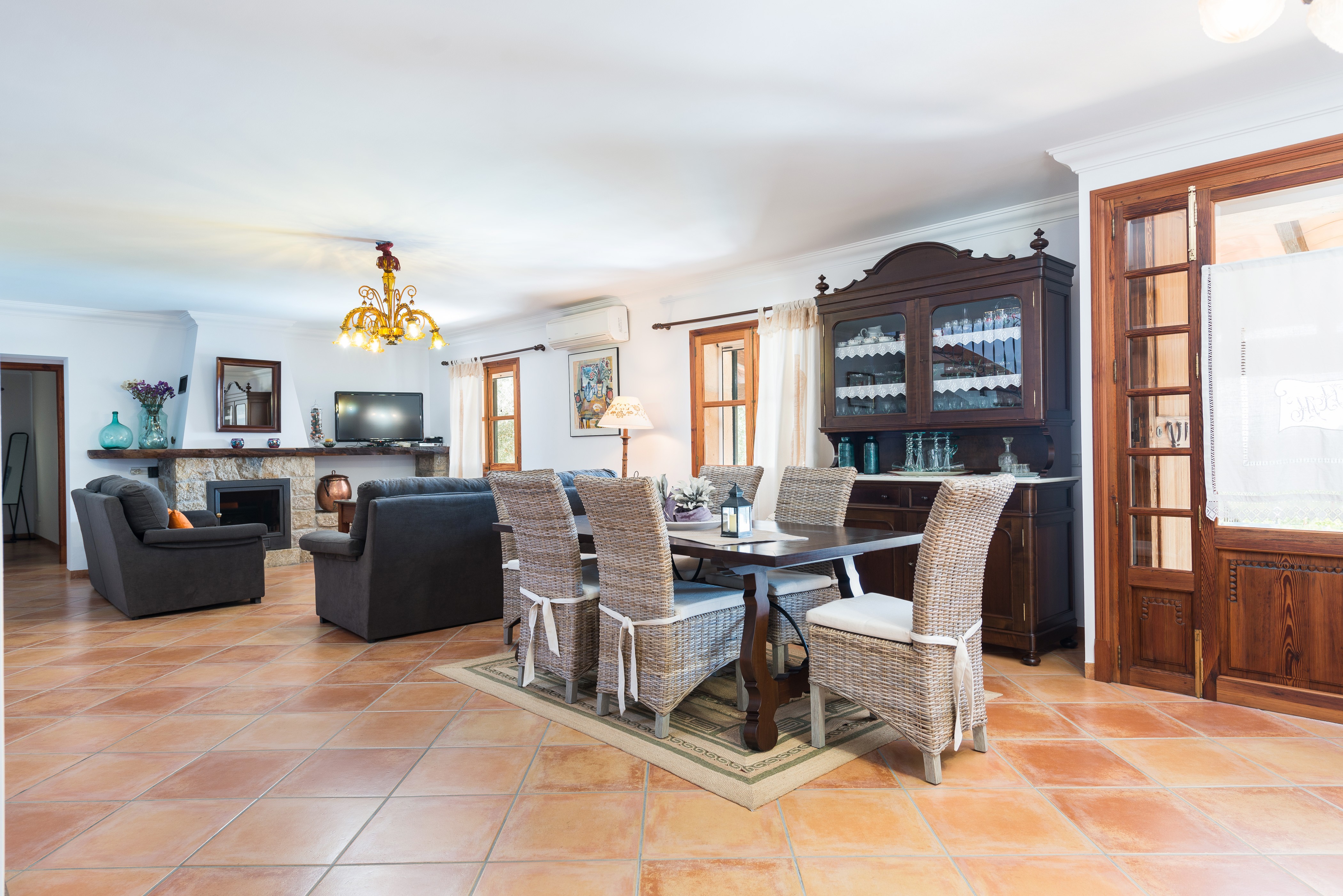 Het twee verdiepingen tellende huis begroet je met een ruime woonkamer met een tv en airconditioning. Aangrenzend is een traditionele Mallorcaanse keuken, volledig uitgerust met een gasfornuis en alle benodigdheden om te koken en te dineren. De wasruimte heeft een wasmachine, strijkijzer en strijkplank. Op de begane grond vind je een badkamer met een bad en twee slaapkamers, elk met een kledingkast - een met twee eenpersoonsbedden en de andere met een tweepersoonsbed. Boven is er een extra badkamer met een douche en nog een slaapkamer met een tweepersoonsbed. Alle drie de slaapkamers zijn voorzien van airconditioning en een kinderbedje en kinderstoel zijn beschikbaar op aanvraag.