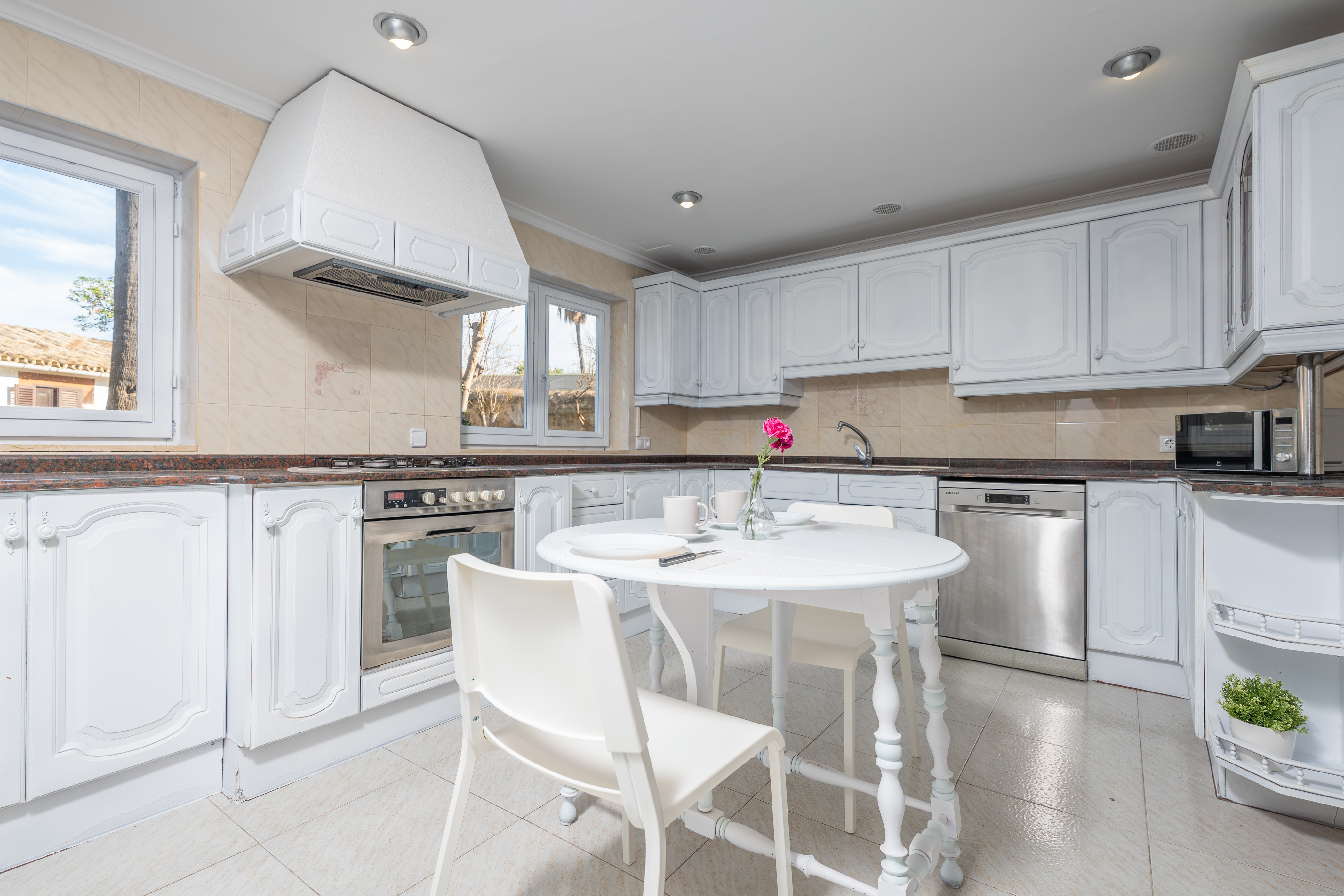 Het huis met twee verdiepingen heeft een eenvoudige en klassieke stijl. Op de begane grond hebben we de eetkamer met tv; de ruime keuken is voorzien van een gasfornuis. Op de begane grond vindt u ook 2 slaapkamers (een met twee eenpersoonsbedden en de andere met een tweepersoonsbed). Er zijn ook twee badkamers met een douche, waarvan één een eigen badkamer heeft. Op de eerste verdieping hebben we nog een woonkamer en de rest van de slaapkamers, allemaal met een tweepersoonsbed, behalve de laatste met een onderschuifbed. Op deze verdieping hebben we nog twee badkamers met douche, waarvan één en-suite. Het huis heeft een wasmachine, strijkijzer en strijkplank, airconditioning in alle kamers, evenals 2 kinderbedjes en 2 kinderstoelen.