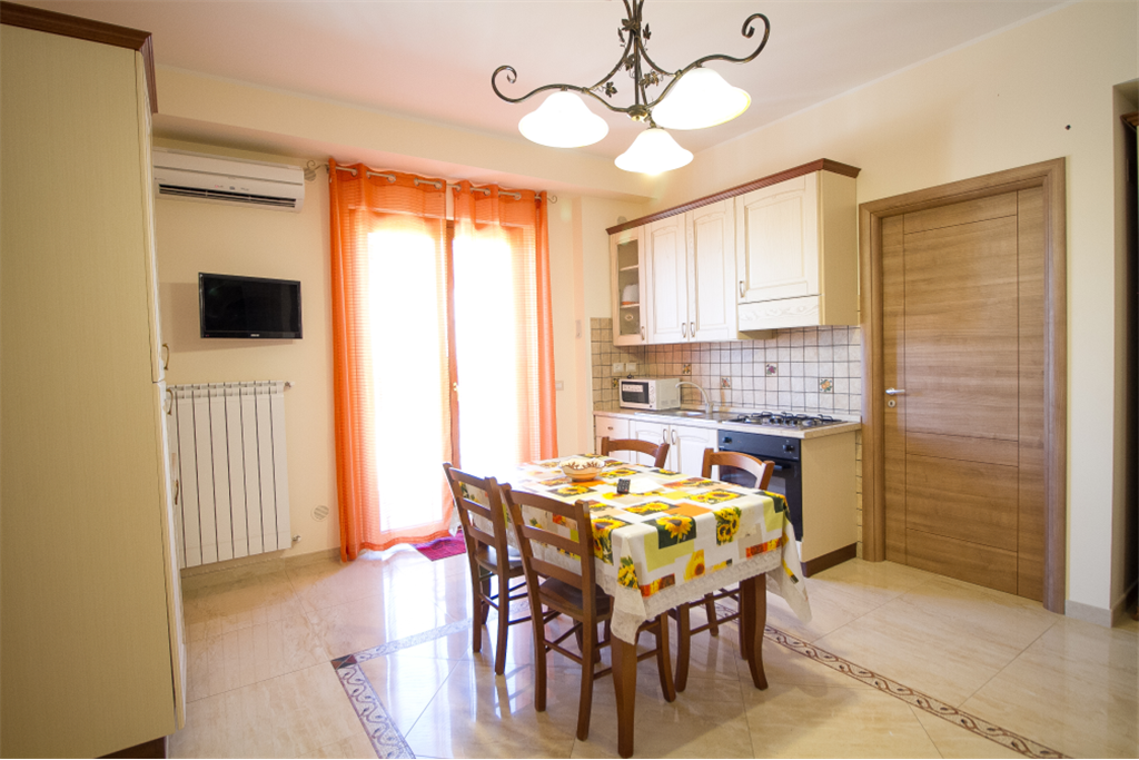 Flat Trilocale van ongeveer 75 vierkante meter en een maximum van 6 personen die wonen met een aangepaste keuken, privé badkamer met douche, terras overzicht . Het appartement is zeer ruim en helder en is ook uitgerust met wasmachine, strijkijzer en strijkplank, koelkast, haardroger, satelliettelevisie , airconditioning en verwarming, gratis internetverbinding. De woning heeft ook parkeergelegenheid.