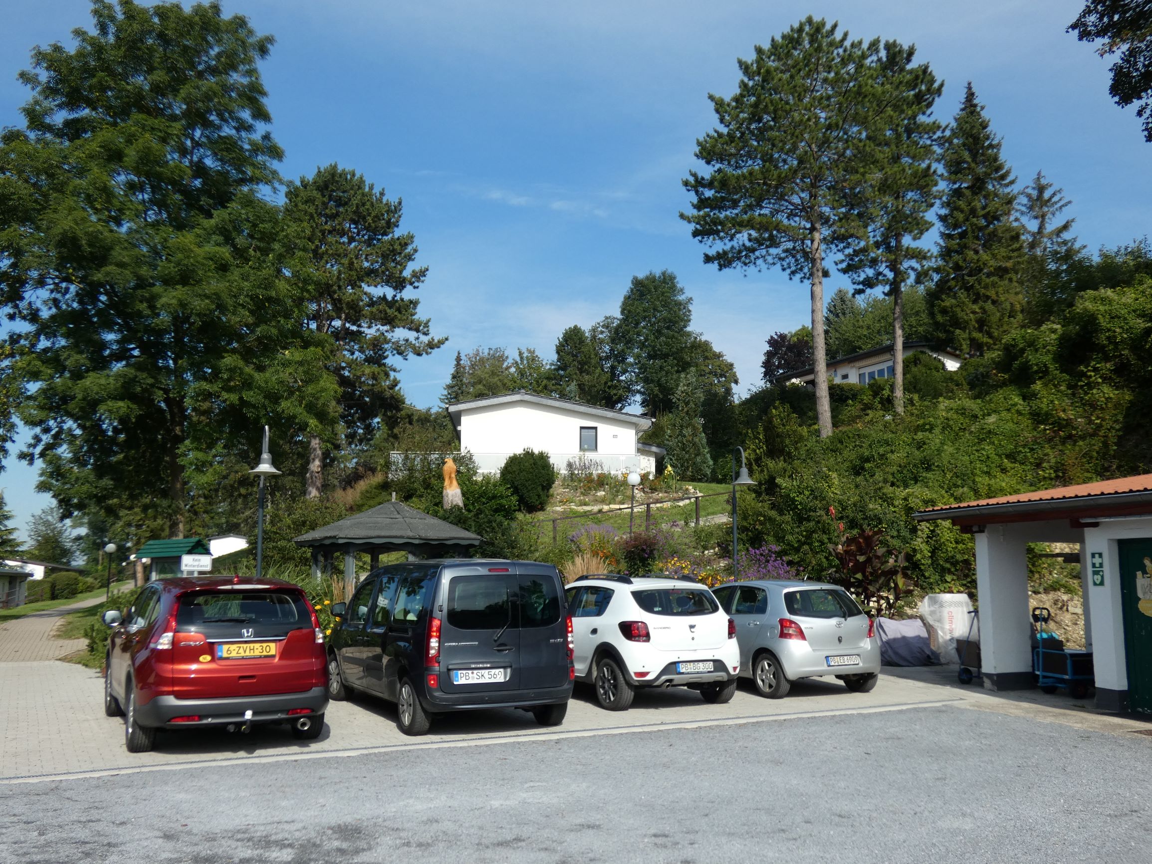 Het terras op het zuiden biedt een prachtig uitzicht over het Altenaudal en het dorp Husen en is ingericht met verstelbare tuinstoelen en voldoende kussens. Het terras is volledig afgeschermd door bomen en struiken en biedt een perfecte plek om te ontspannen en te genieten van de natuur.