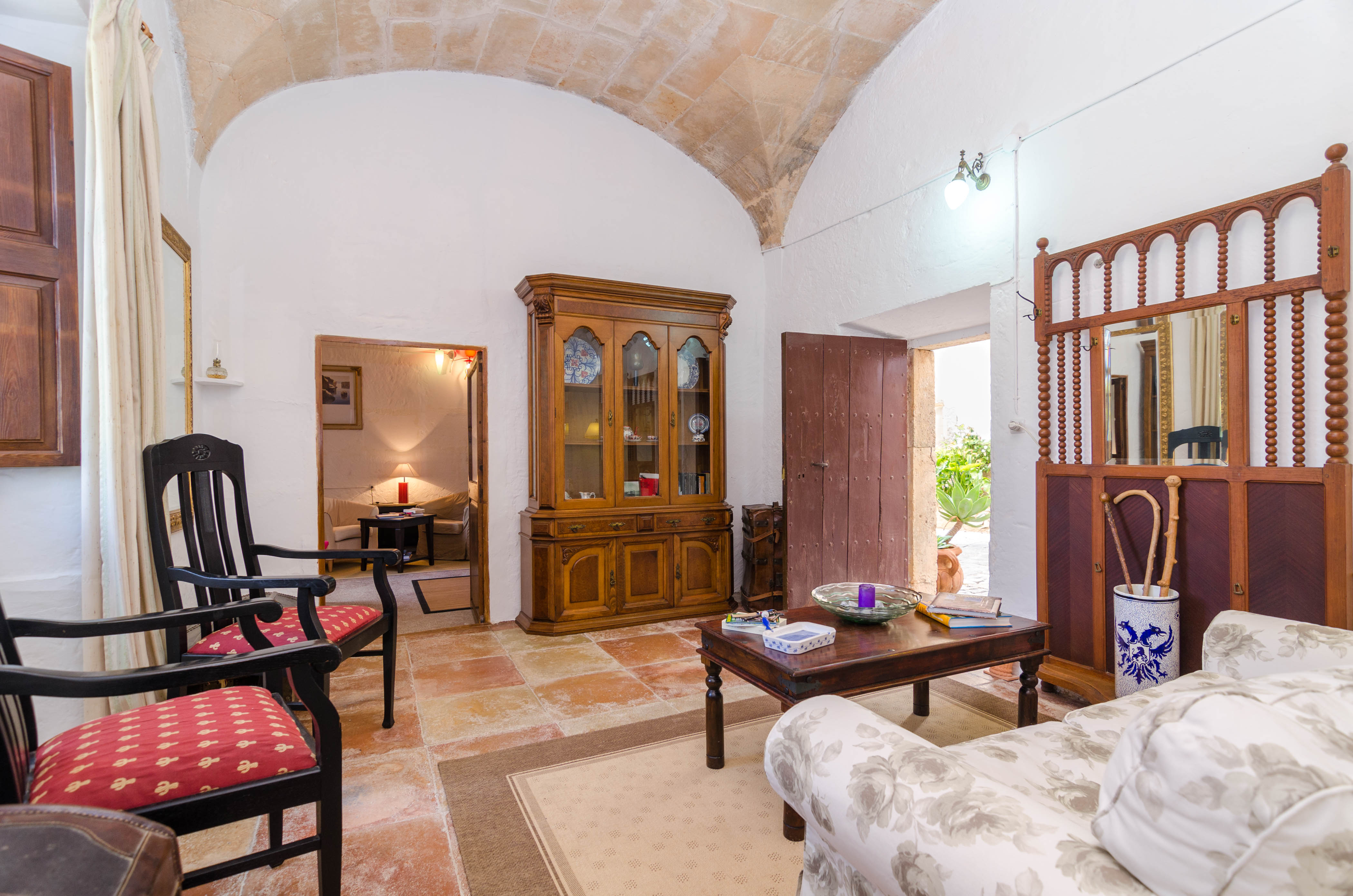 Dit huis is een juweel van de landelijke architectuur van Mallorca, met behoud van vele historische en traditionele elementen die het nog meer charme geven. Het is verdeeld over twee verdiepingen. De eetkamer heeft een historische inrichting en de woonkamer op de eerste verdieping is zeer ruim, licht en gezellig. Ontspan op de bank, of u nu een boek leest, satelliet-tv kijkt of gewoon bij de open haard uitrust. Wilt u nog meer ontspannen? Dan is er nog een kleine kamer met een studeerkamer, twee fauteuils en een tafeltje. De traditionele Mallorcaanse vrijstaande gaskeuken is zeer charmant en volledig uitgerust, zodat u probleemloos kunt koken. In de wasruimte vindt u een wasmachine, strijkijzer en strijkplank. Het huis heeft 2 slaapkamers op de begane grond en 5 op de eerste verdieping, waarvan zes met een tweepersoonsbed en één met twee eenpersoonsbedden, en een eigen badkamer met douche. Twee van de tweepersoonskamers hebben een eigen badkamer, één met een douche en de andere met een bad. Het huis heeft ook een badkamer met douche op de begane grond en een toilet op de eerste verdieping.