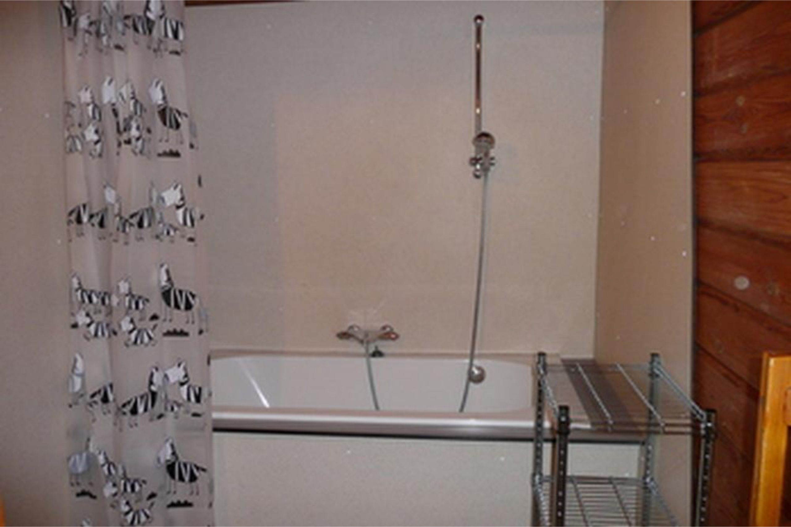 De badkamer is uitgerust met een bad, een douche (in het bad) en een wastafel. Er is ook een apart toilet met een extra wastafel.