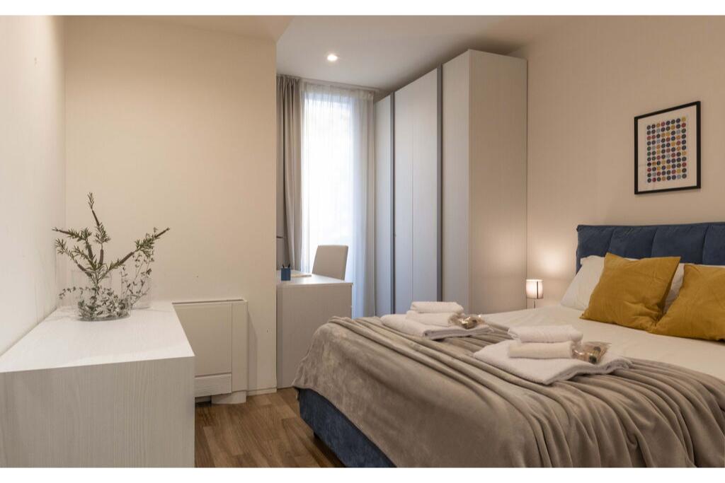 - 1 tweepersoonsslaapkamer met kledingkast, bureau en openslaande deur met toegang tot het uitgeruste terras