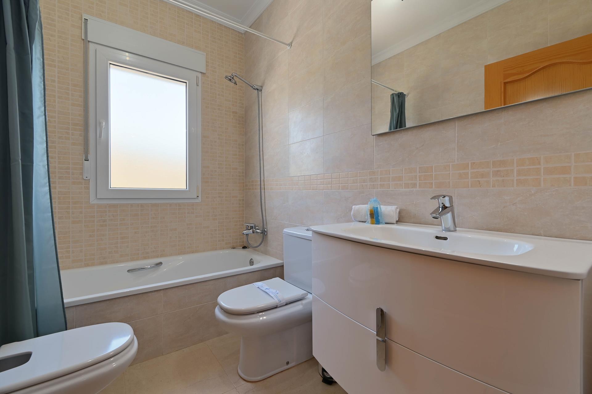 • Badkamer met dubbele wastafel, ligbad, douche en toilet