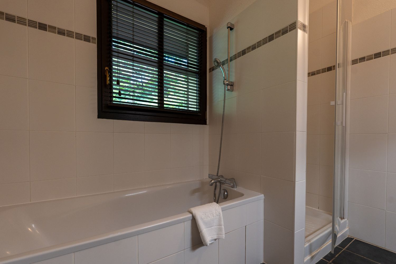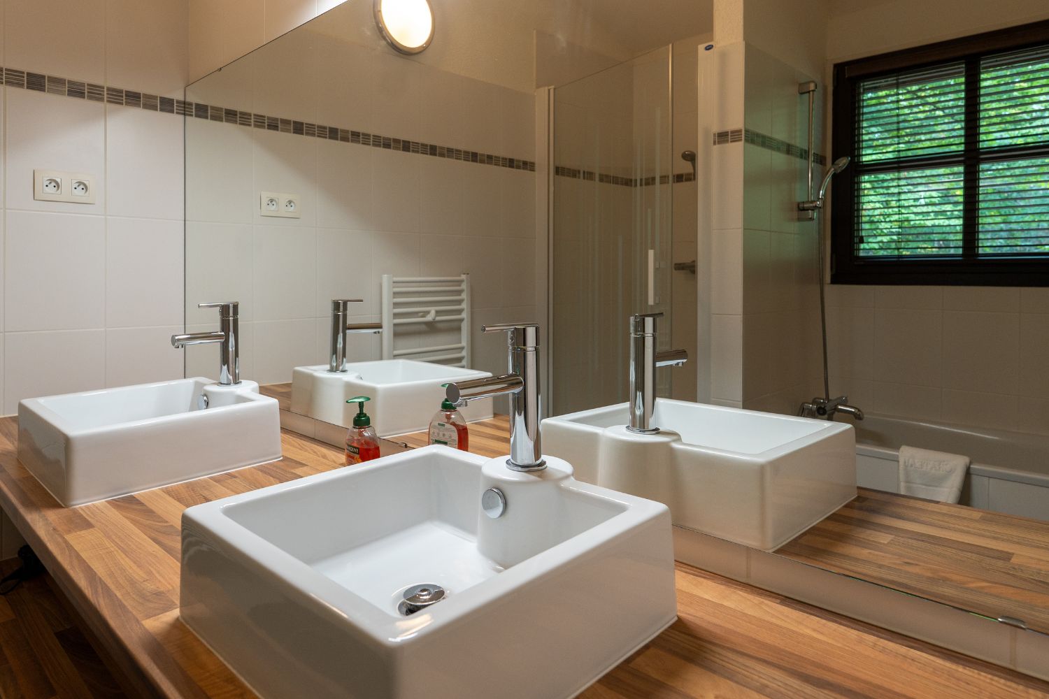 Boven zijn de drie slaapkamers ingericht met comfortabele bedden voor een goede nachtrust. De hoofdslaapkamer heeft een eigen en-suite badkamer met een bad, douche en dubbele wastafel. De twee extra slaapkamers delen een tweede badkamer met een douche en dubbele wastafel.