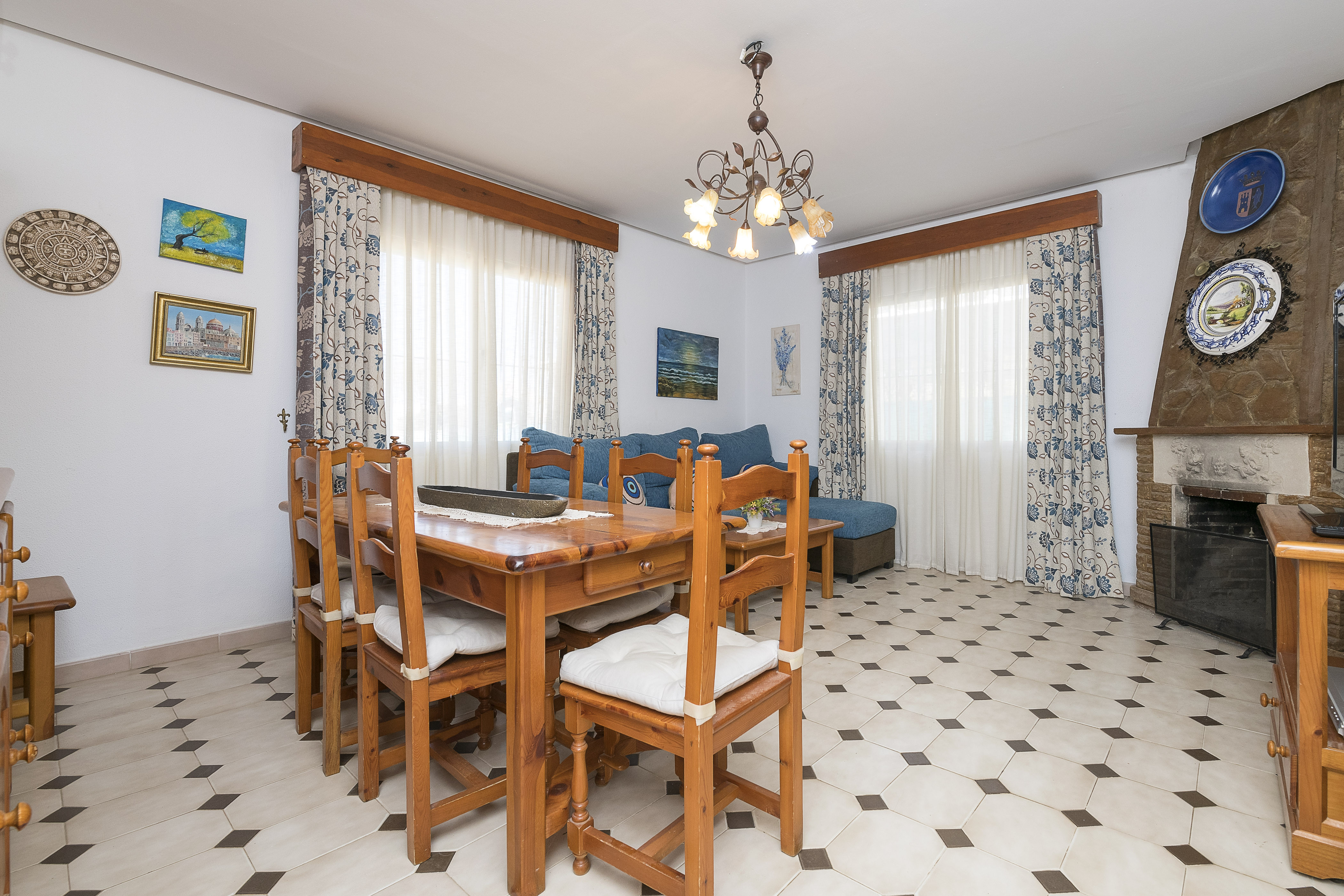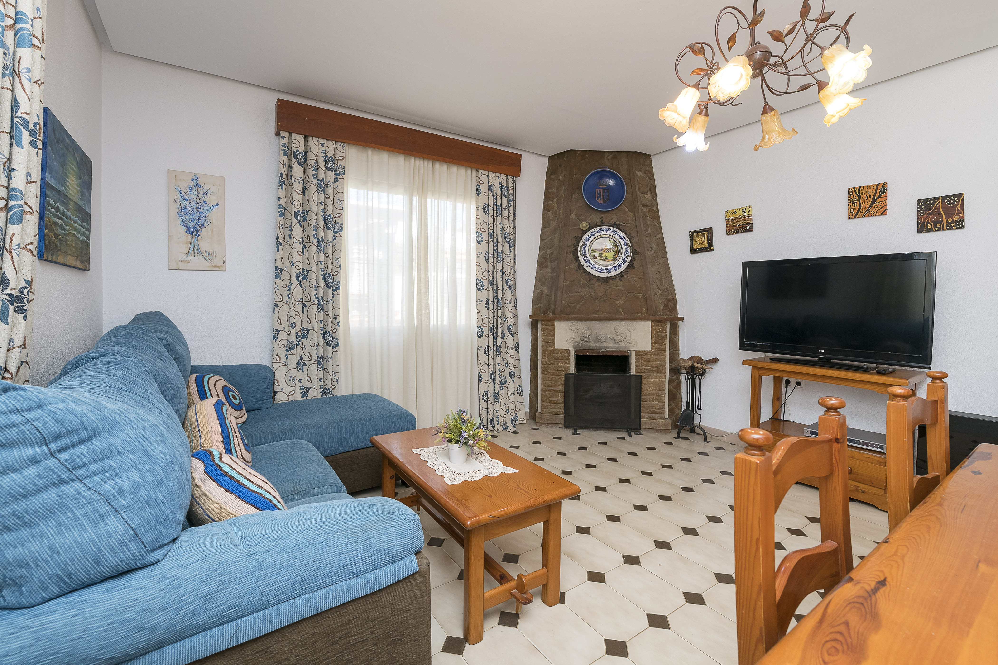 Deze woning is volledig gelijkvloers en binnen is er een mooie eetkamer met open haard en tv waar je kunt ontspannen dankzij de comfortabele bank. De keuken is onafhankelijk en heeft een keramische kookplaat en al het nodige keukengerei om comfortabel te koken. Als het tijd is om te slapen, kun je gebruik maken van een van de drie beschikbare slaapkamers. Een ervan heeft een tweepersoonsbed en de andere twee hebben twee eenpersoonsbedden. Een badkamer met douche maakt de kamer compleet. Je kunt gebruik maken van de ventilator, radiator, wasmachine, strijkijzer en strijkplank en als je reist met je baby, kunnen we je voorzien van een kinderbedje en kinderstoel.