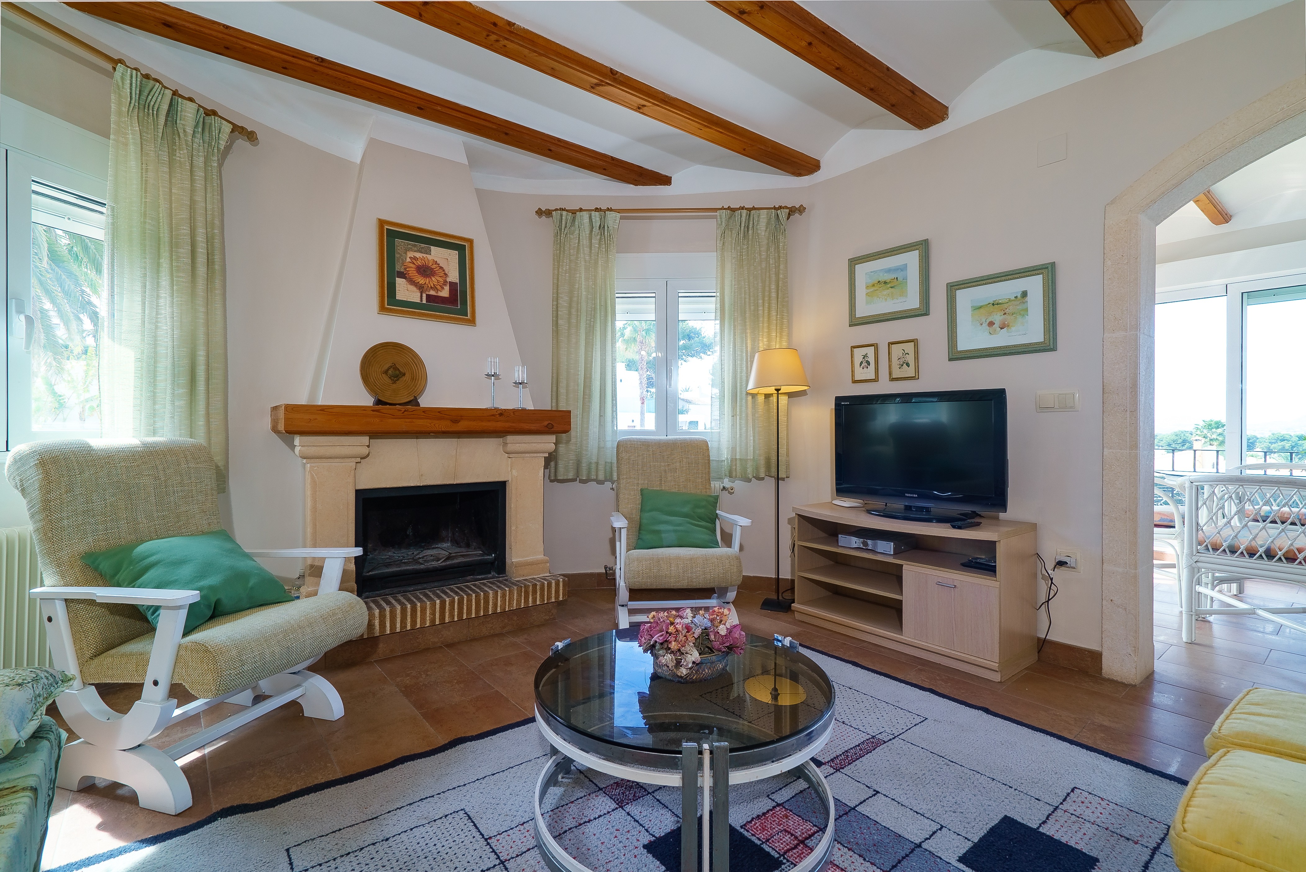 Het huis met slechts één verdieping is voorzien van centrale verwarming op gasolie. Vanuit verschillende ingangen kunt u de woning betreden. Binnen vindt u een eetkamer met grote ramen waar u kunt genieten van het uitzicht op de tuin, het zwembad en de bergen. Het eetgedeelte leidt naar de zitkamer die is uitgerust met comfortabele banken en fauteuils waar u tv kunt kijken. De zeer ruime keuken is voorzien van een gasfornuis, oven en een tafel met stoelen. Het huis biedt slaapkamers met elk een kast, waarvan één met een tweepersoonsbed, airconditioning en een eigen badkamer met douche. De andere twee slaapkamers, één met een tweepersoonsbed en de andere met twee aparte bedden, zijn elk voorzien van een ventilator. Er is een tweede badkamer met een hydromassagebad voor de rest van het huis. Uiteraard vindt u ook een wasmachine, een strijkijzer en een strijkplank. Als u met een baby reist, zijn op aanvraag ook een kinderbedje en een kinderstoel beschikbaar.