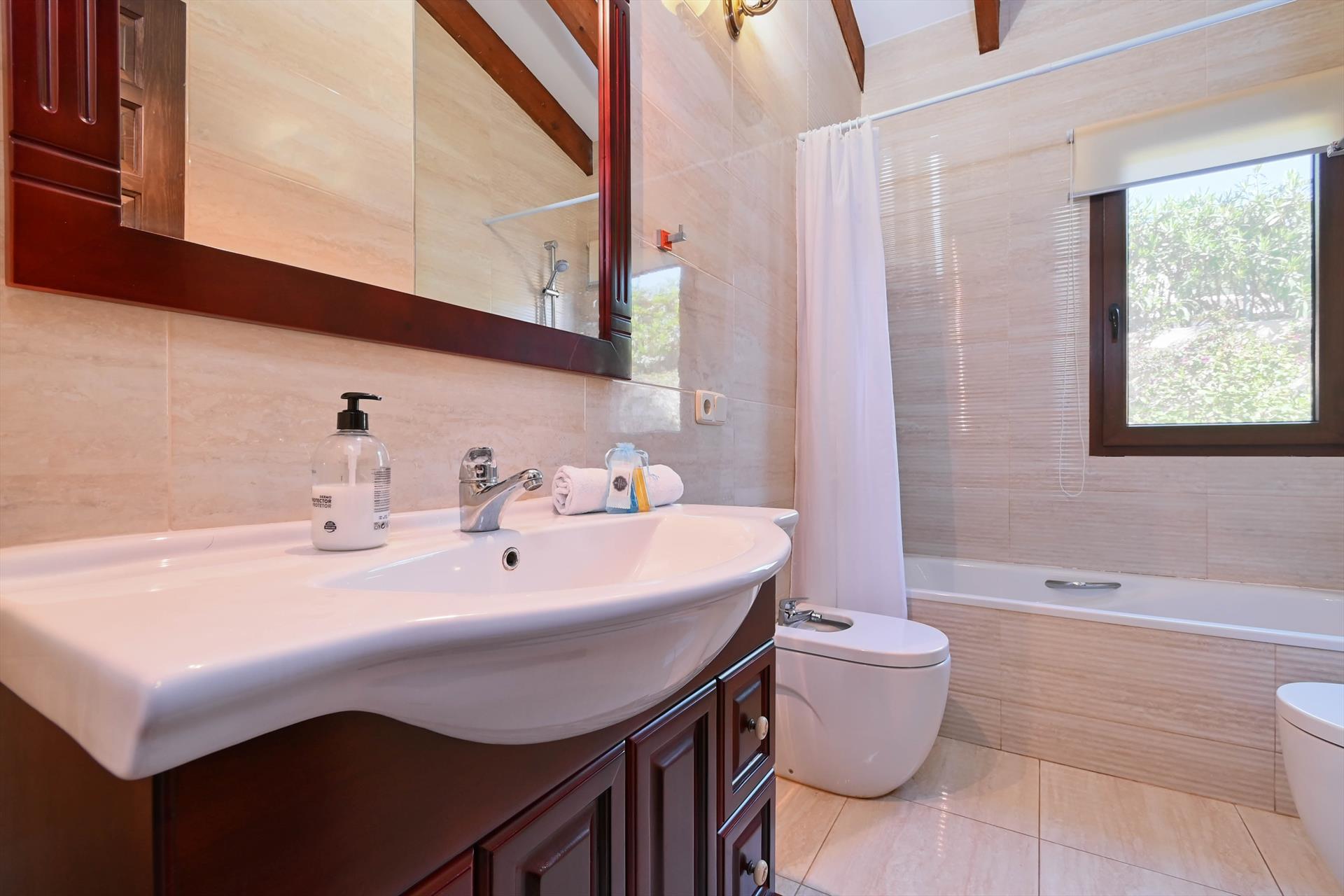 • badkamer met enkele wastafel, bad/douchecombinatie, bidet en toilet