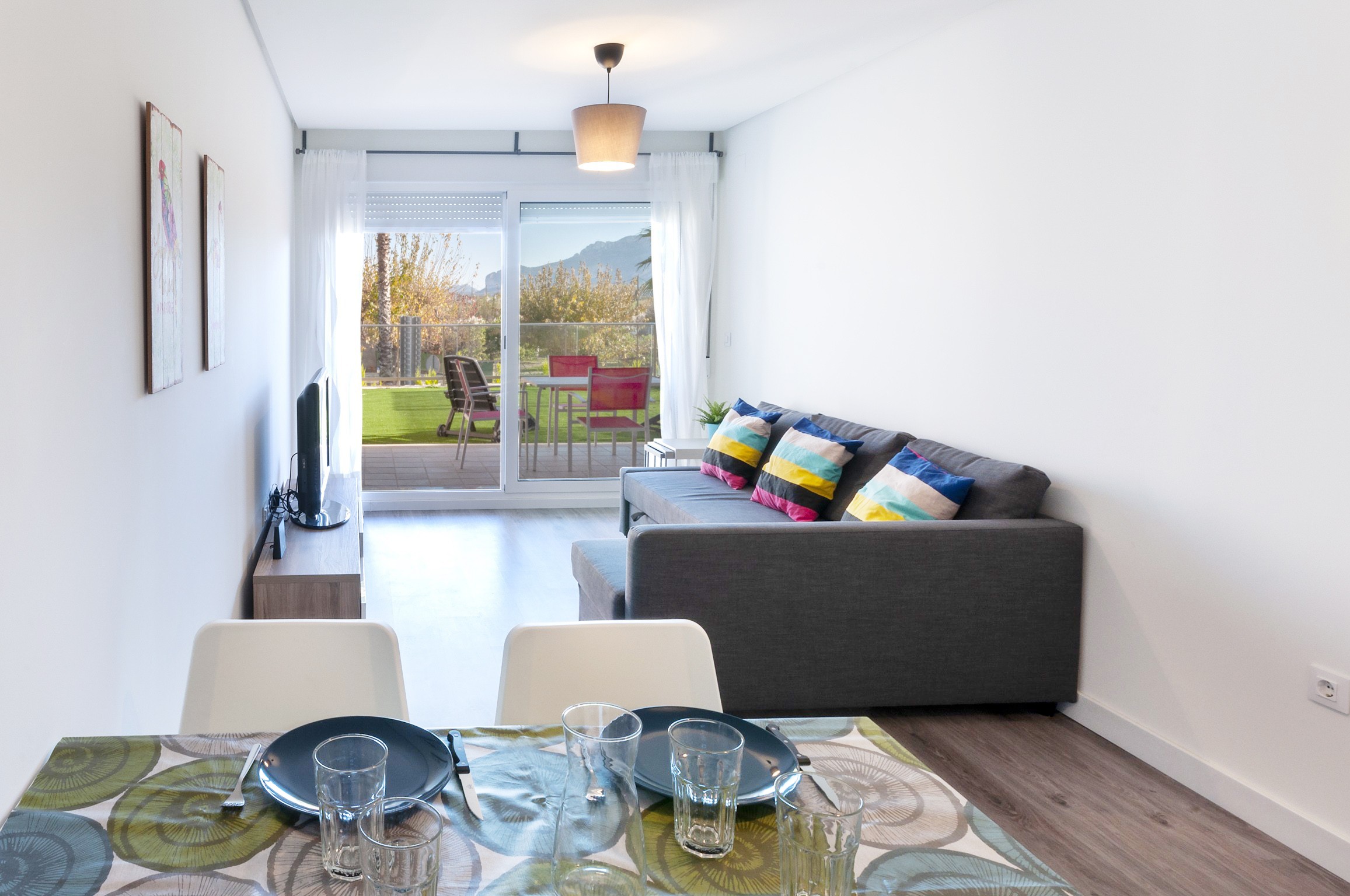 De moderne keuken heeft een keramische kookplaat en is voorzien van al het benodigde keukengerei om tijdens uw vakantie te koken. De woonkamer biedt een prachtig uitzicht op het terras en de bergen en is voorzien van een comfortabele slaapbank en een televisie. Als u met uw baby reist, kunnen wij een kinderbedje en een kinderstoel klaarzetten. Tenslotte is de gehele accommodatie voorzien van airconditioning.