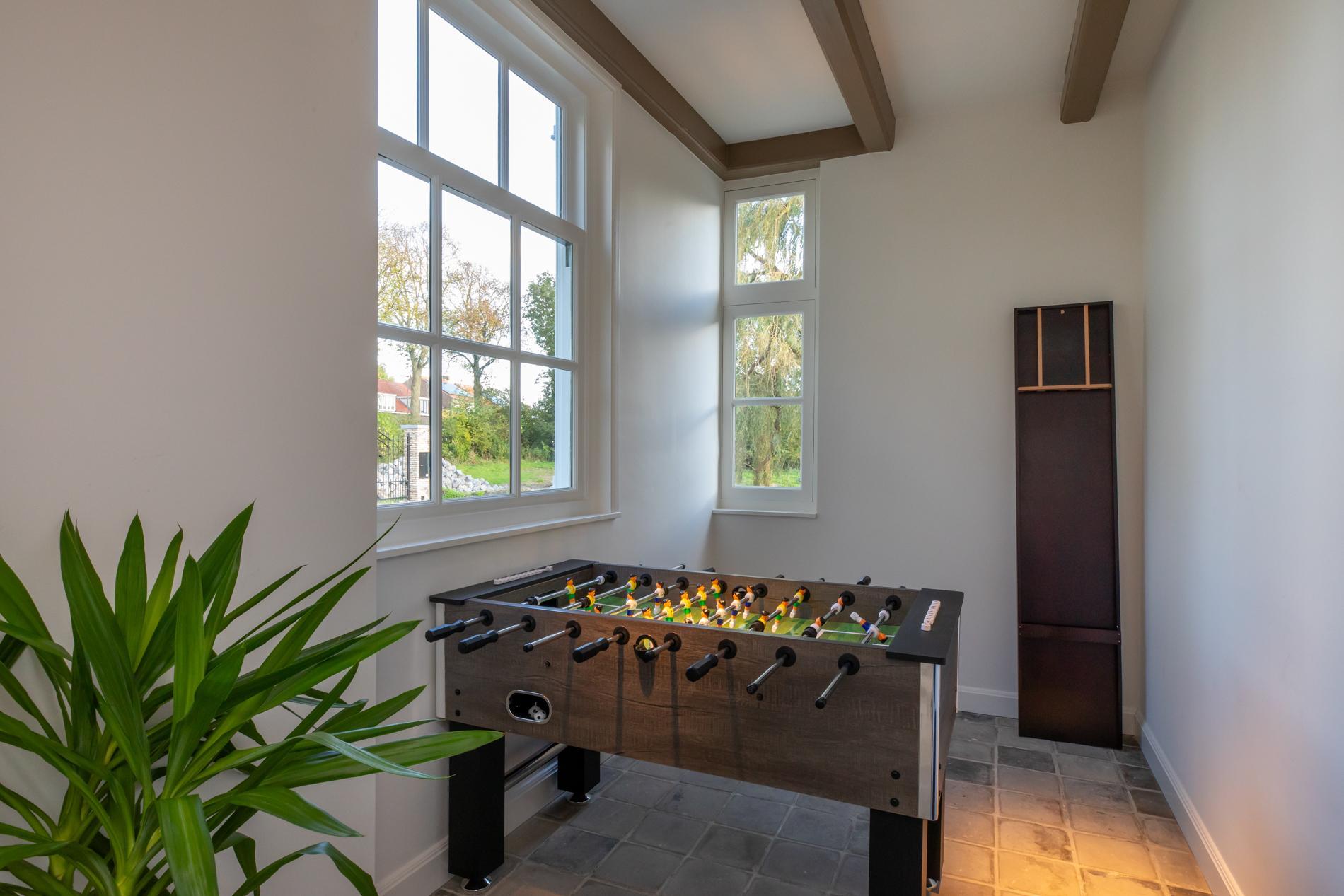 Aan de eettafel met 8 zitplaatsen kun je gezamenlijk genieten van een maaltijd. Zin in een potje tafelvoetbal? In de woning staat een tafelvoetbaltafel klaar. In de hal bevindt zich het eerste toilet.