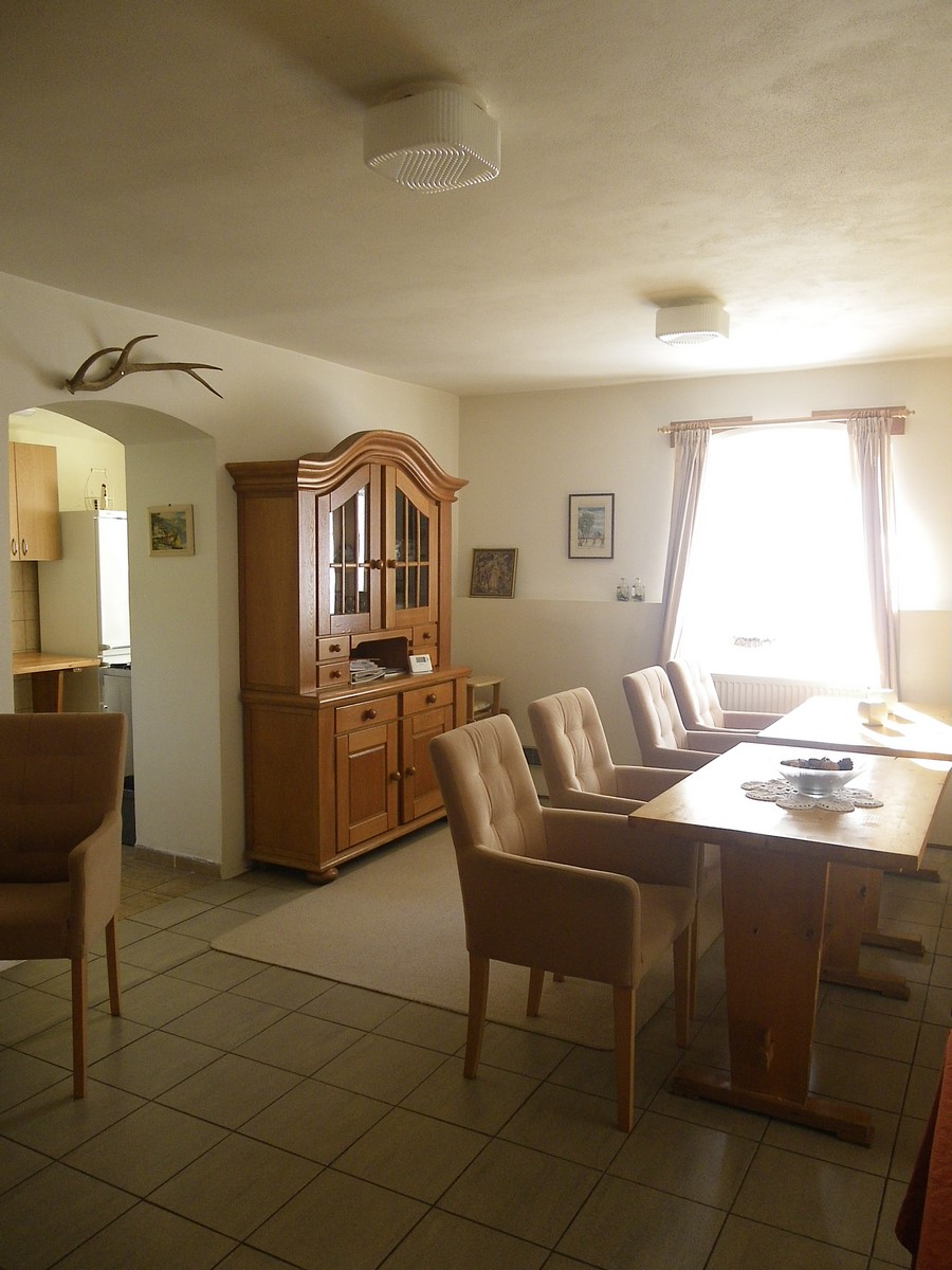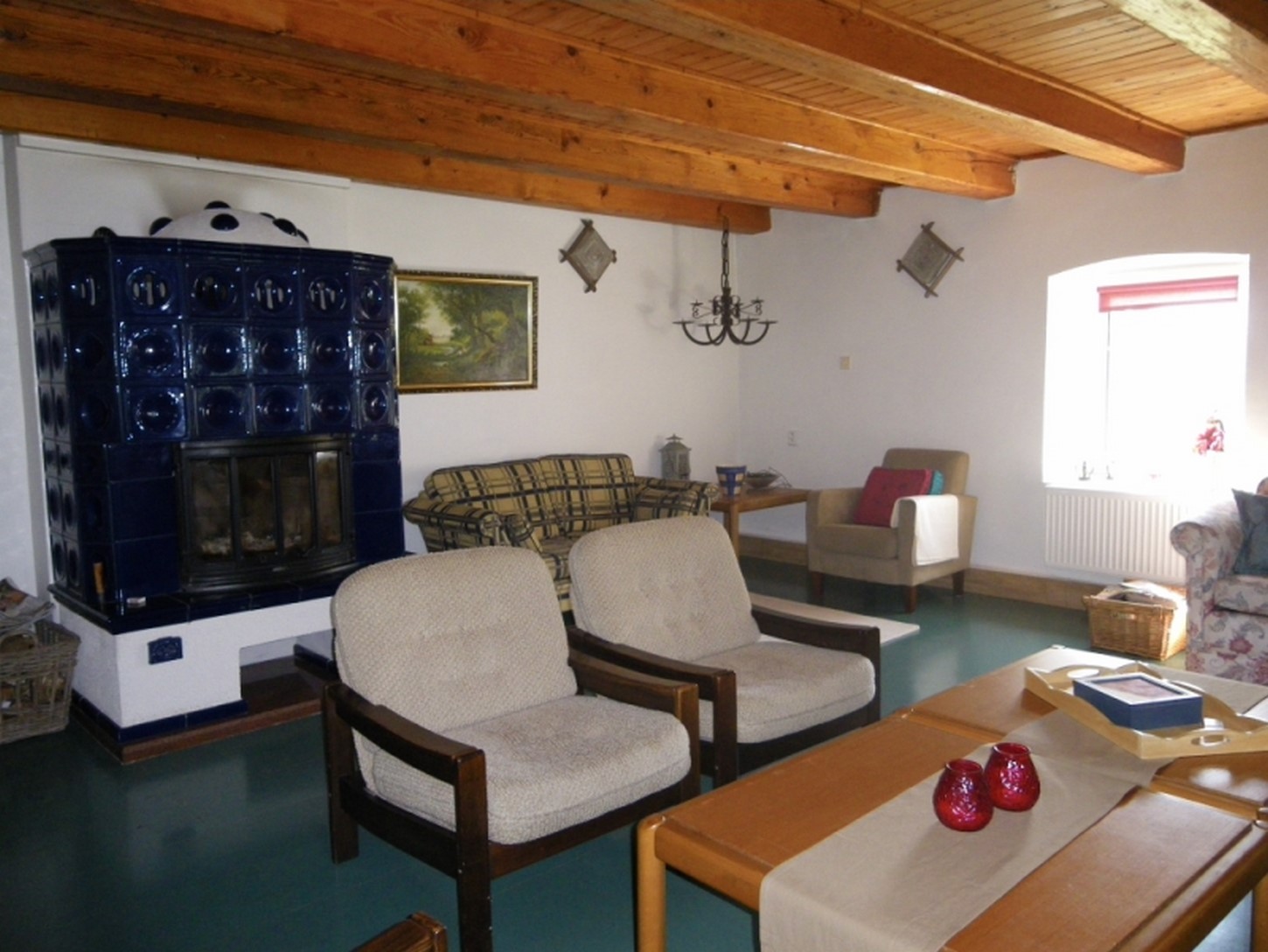 De hal van deze ruime woning is geschikt om schoenen, fietsen, BBQ e.d. neer te zetten. In de ruime woonkamer (48 m2) staan voldoende tafels en stoelen , een originele tegelkachel die op hout gestookt wordt, een jumbo TV (met Nederlandse zenders) en een DVD/CD speler. De keuken is ingericht met een aanrecht met 4 spoelbakken, een 6-pits horeca-fornuis met een oven die groot genoeg is voor 3 kippen. Verder is er een grote koelkast met aparte diepvries, broodbakmachine en koffiezetapparaat. Beneden zijn er 2 slaapkamers, beide geschikt voor 2 personen. Een kinderbedje is beschikbaar. De twee badkamers hebben ieder 2 douches en een toilet. Er is een föhn. Boven zijn er 4 slaapkamers: 3 slaapkamers voor 2 personen en 1 slaapkamer voor 3 personen. Er zijn 2 toiletten en 2 wastafels. Tot slot is er nog een stookkamer. Vanaf eind mei t/m eind september kunt u gebruik maken van het spiksplinternieuwe verwarmde zwembad en ook is er een infrarood-sauna voor 2 personen. In dit huis overheerst het gevoel van ruimte, zelfs met een volledige bezetting. De gehele woning is voorzien van centrale verwarming.