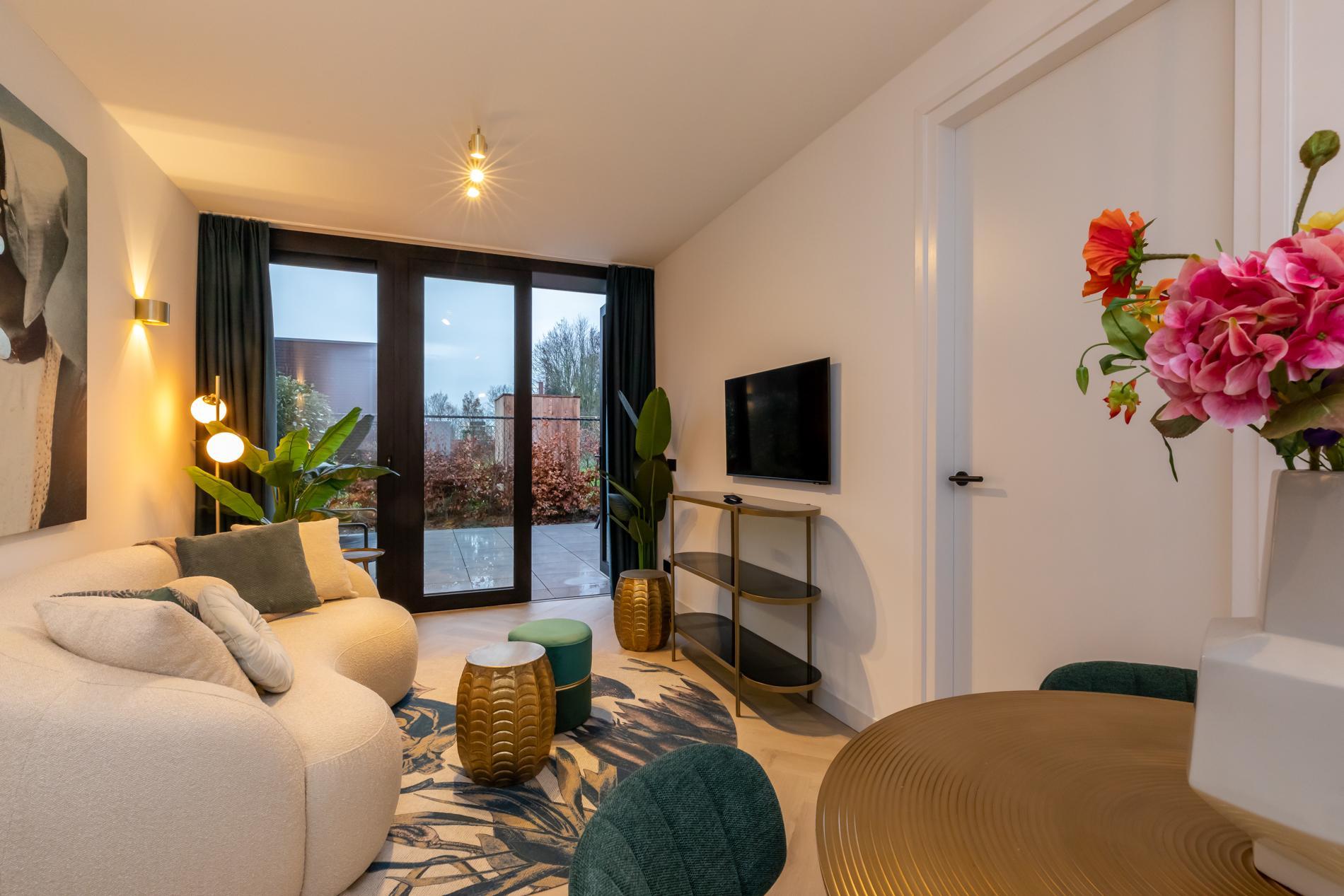 De slaapkamer geeft een chique hotelgevoel en is ingericht met een tweepersoonsbed, nachtkastjes en een ruime kledingkast. Airco en verduisterende raambekleding zorgen voor optimaal comfort en een goede nachtrust. De badkamer is ingericht met een wastafelmeubel, een inloopdouche met regendouche en een toilet.