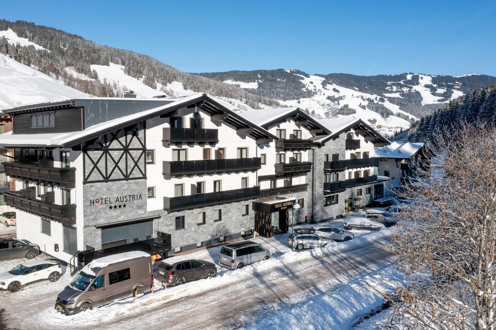 Hotel Austria is een sfeervol 4-sterrenhotel in het Oostenrijkse Saalbach, gelegen op ca. 1.000 meter hoogte en ideaal voor een heerlijke wintersportvakantie. Dit hotel is bijzonder geliefd onder stellen en vriendengroepen vanwege de uitstekende ligging, slechts 1 km van de skiliften van het populaire skigebied Saalbach-Hinterglemm-Leogang-Fieberbrunn. Je verblijft in Hotel Austria op basis van halfpension verzorging. De inhoud van de verzorging is altijd onder voorbehoud van wijzigingen. Het hotel beschikt over fijne faciliteiten zoals een gerenoveerde ontbijtruimte, een gezellige bar en een modern wellnesscenter met sauna's en een nieuw buitenbinnenzwembad.