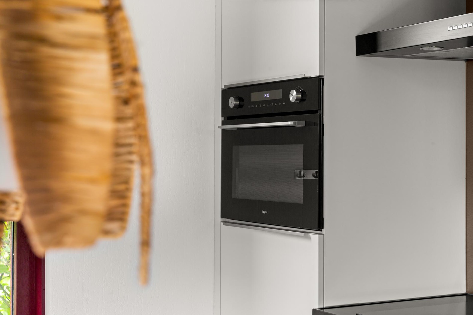 Binnen vindt u een gezellige woonkamer met een LCD-tv en grote ramen die veel natuurlijk licht binnenlaten. Bij mooi weer kunt u eenvoudig de schuifdeuren naar het terras openen en genieten van de frisse lucht. De open keuken is zichtbaar vanuit de woonkamer en is voorzien van een Nespresso-machine, een filterkoffiemachine, een vaatwasser en een magnetron of combimagnetron. Een van de slaapkamers, gelegen op de begane grond, is voorzien van twee aparte boxspringbedden. De badkamer beschikt over een douche, wastafel en wasmachine. Er is een apart toilet en een berging met een extra wasmachine in de gang.