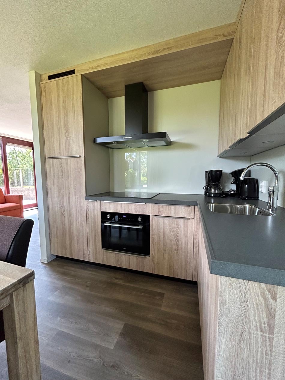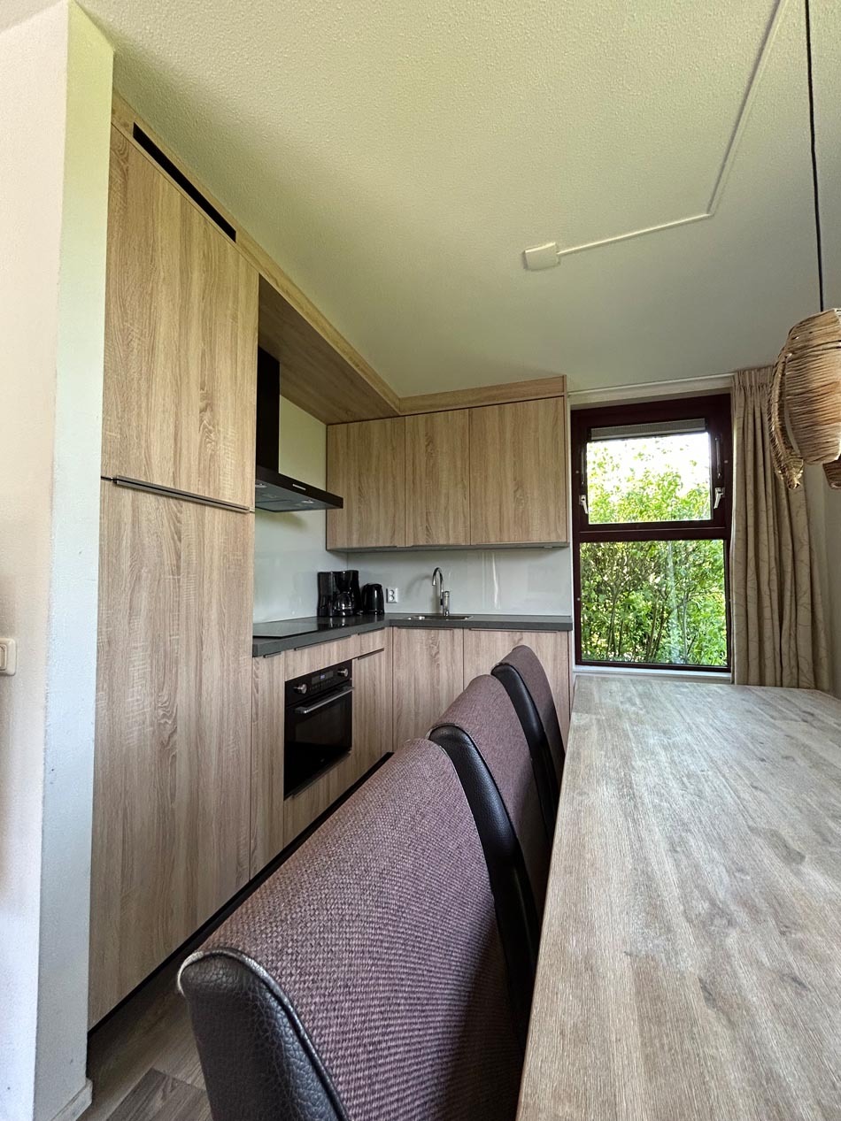 De indeling komt overeen met een vergelijkbaar model, maar heeft een extra badkamer met een bad voor extra comfort. De knusse woonkamer is voorzien van een tv, grote ramen en een schuifdeur naar het zonnige terras. De open keuken is uitgerust met een filterkoffiezetapparaat, een Nespresso-machine, een vaatwasser en een combimagnetron of een aparte magnetron en oven. Op de begane grond bevindt zich tevens een badkamer met inloopdouche en toilet, een slaapkamer met twee comfortabele boxspringbedden en een bergruimte met wasmachine.