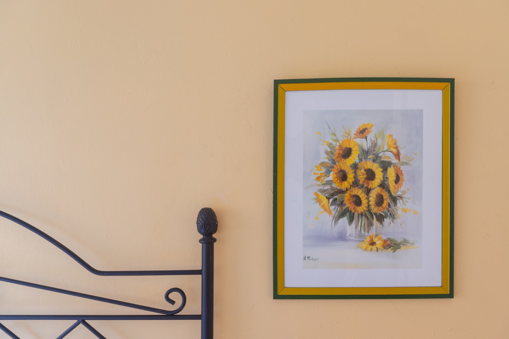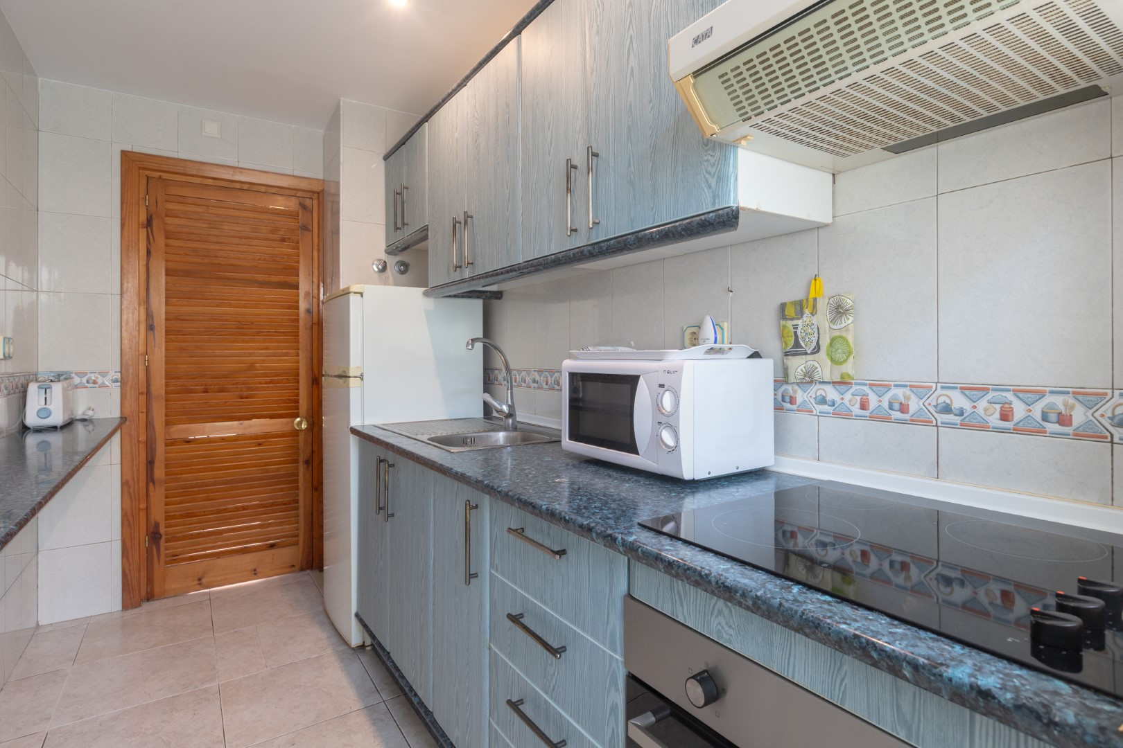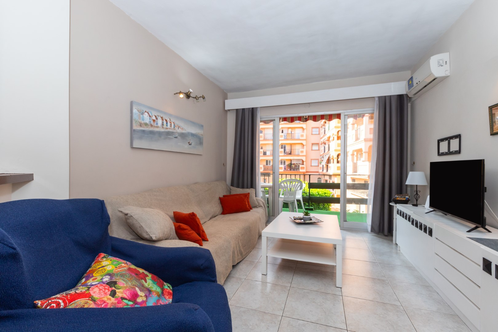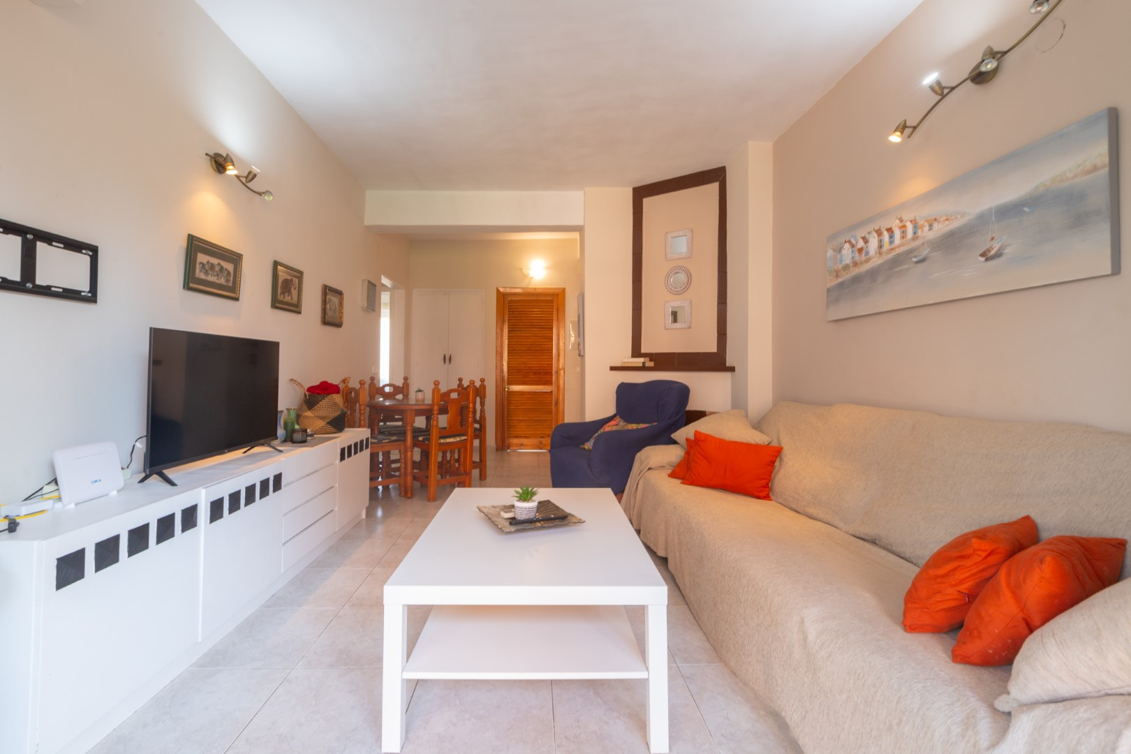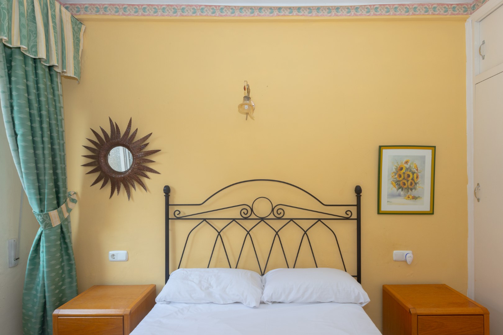 Binnen biedt het appartement - gelegen op de eerste verdieping van een gebouw zonder lift - een lichte en functionele indeling. De woonkamer is voorzien van airconditioning, een Smart TV en een open eetgedeelte. De keuken, uitgerust met een keramische kookplaat, beschikt over alle essentiële keukengerei om huisgemaakte maaltijden te bereiden. Er zijn twee slaapkamers: één met een tweepersoonsbed en één met twee eenpersoonsbedden, beide uitgerust met ventilatoren en kledingkasten. De complete badkamer beschikt over een douche en een wastafel. Voor extra gemak zijn er ook een wasmachine, strijkijzer en strijkplank aanwezig, wat zorgt voor een praktisch en comfortabel verblijf.