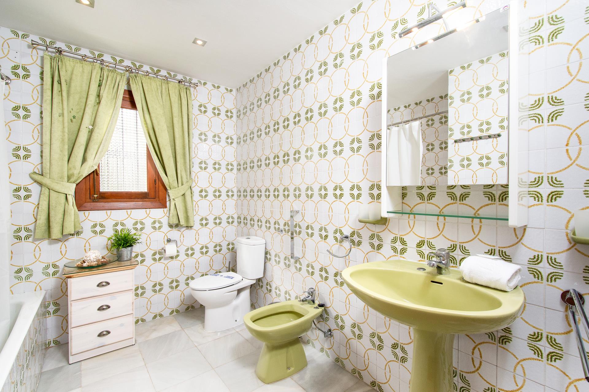 • badkamer met enkele wastafel, bad/douchecombinatie, bidet en toilet