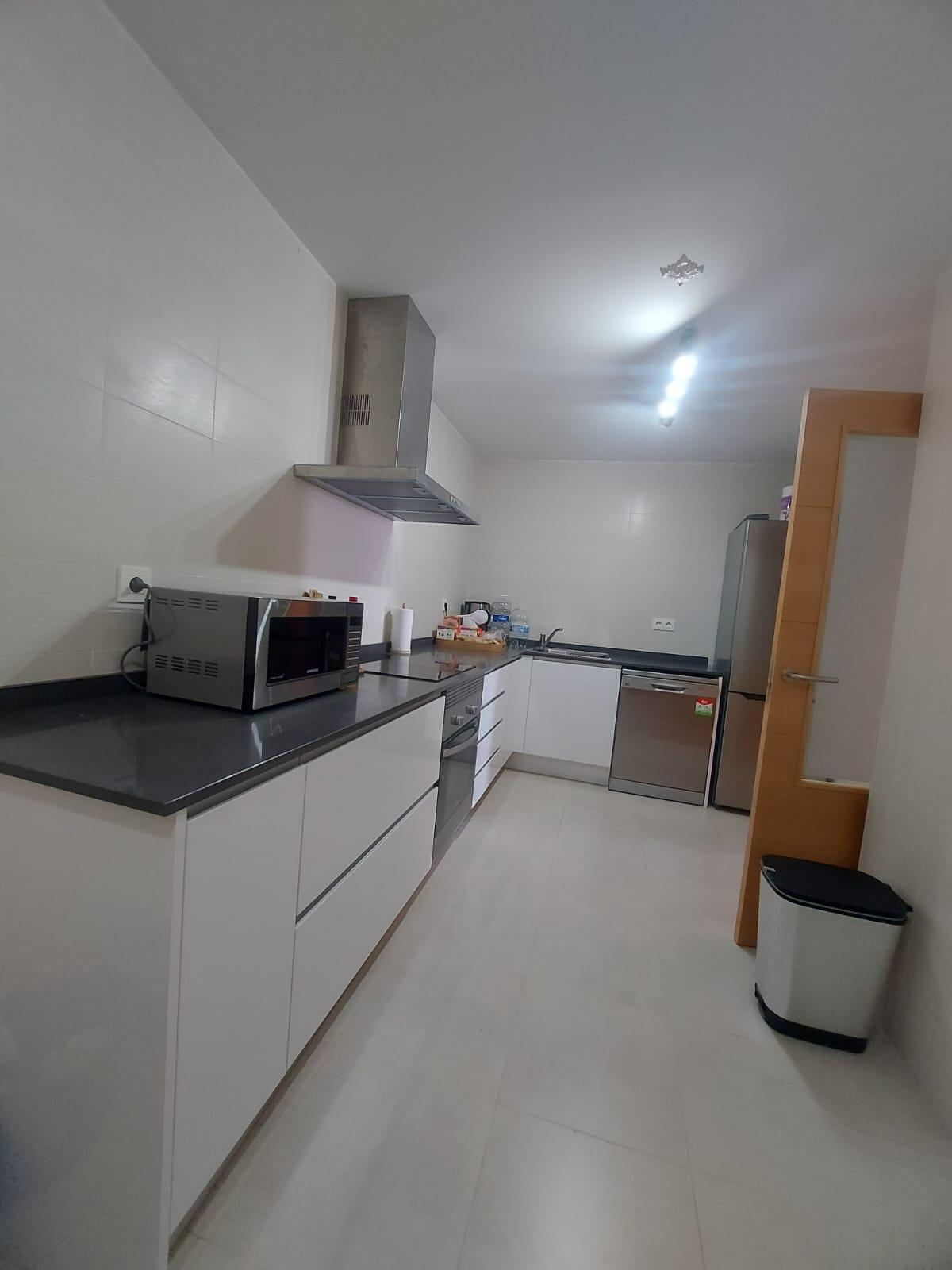 Keuken met elektrische kookplaat, elektrische oven, vaatwasser, koelkast, koffiezetapparaat, waterkoker en citruspers