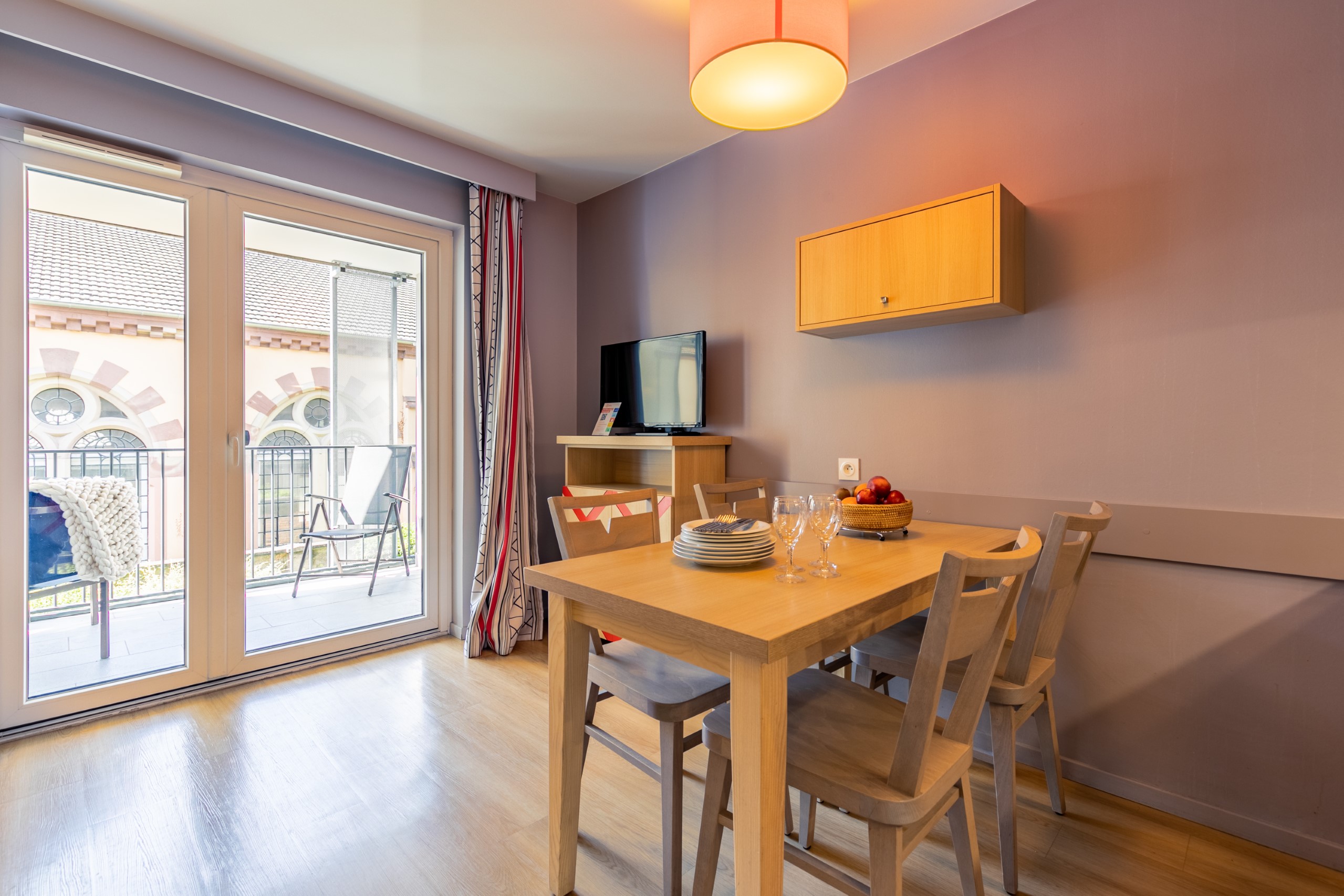 - Beschrijving: Omvat een woonkamer, een slaapkamer, een volledig uitgeruste open kitchenette, een badkamer en een toilet.