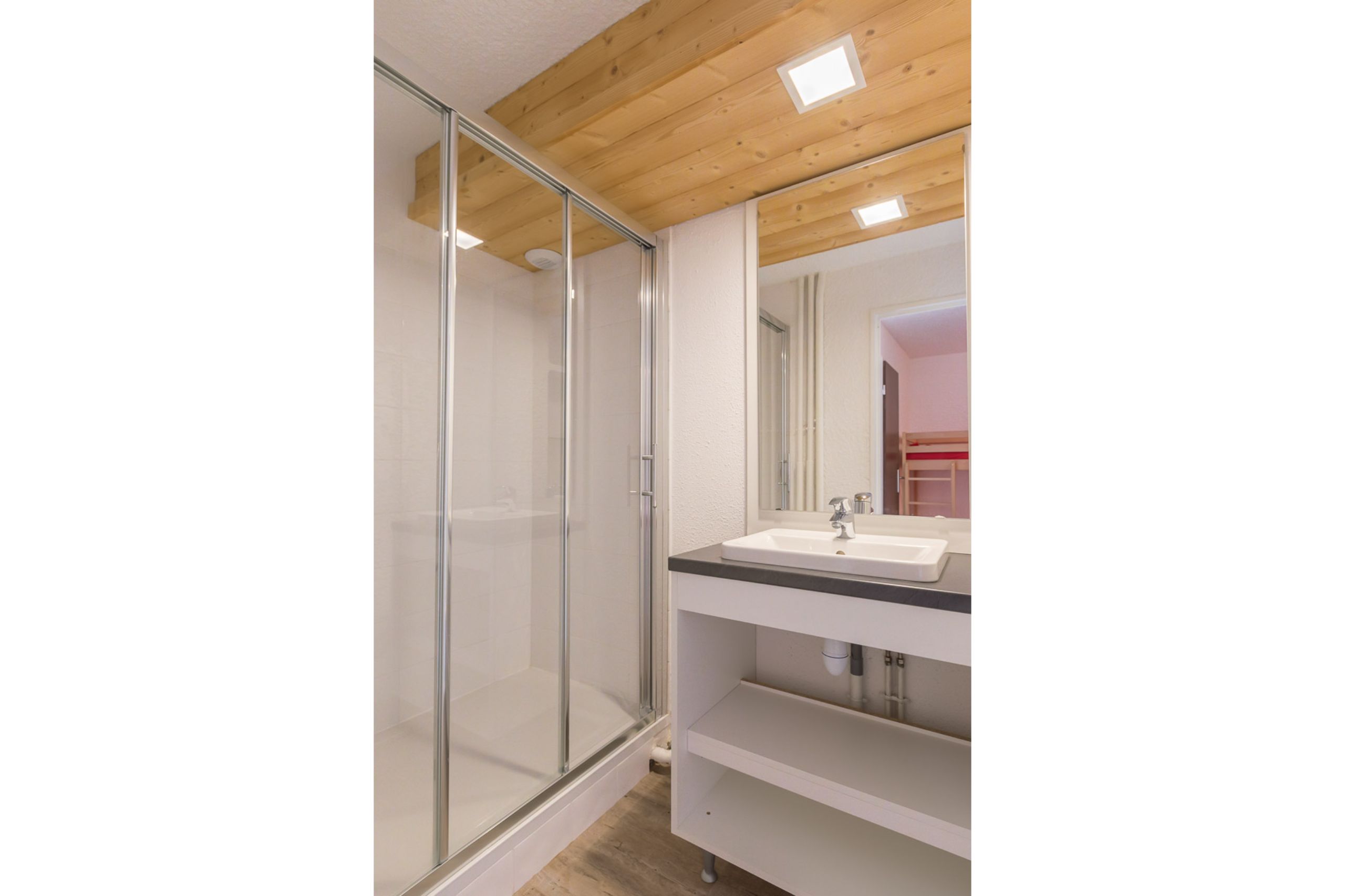 Een apart slaapgedeelte heeft een stapelbed, waardoor je twee extra slaapplekken hebt in een semi-privé omgeving.