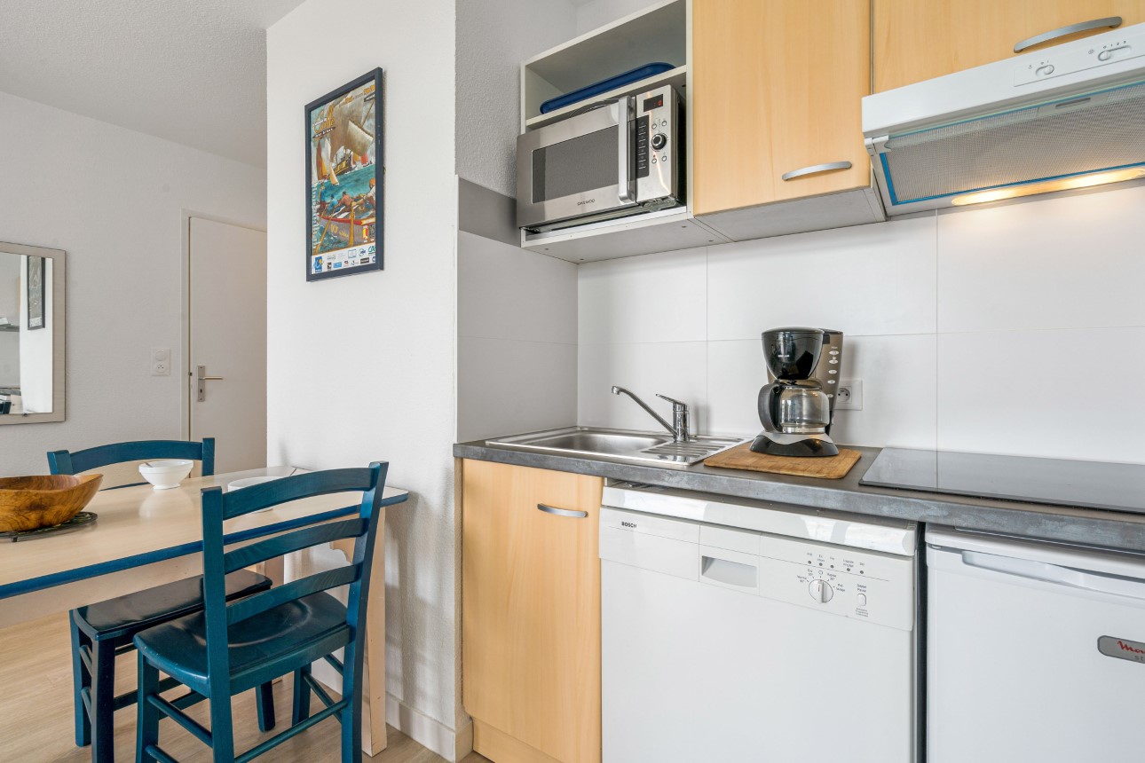 - Keuken: Volledig ingerichte open kitchenette in de woonkamer