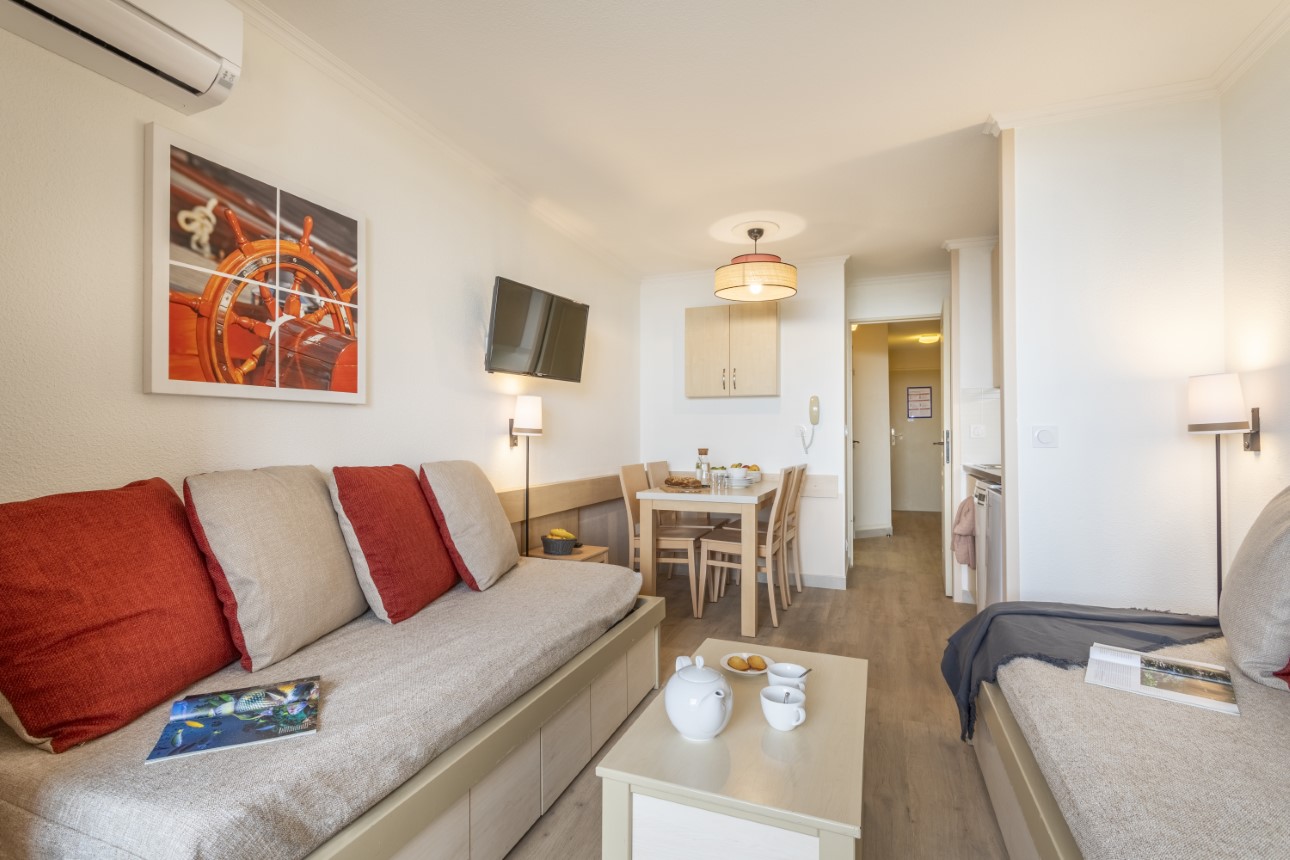 - Woonkamer: 2 eenpersoonsbedden, waarvan één met een uitklapbed (aanbevolen voor kinderen)