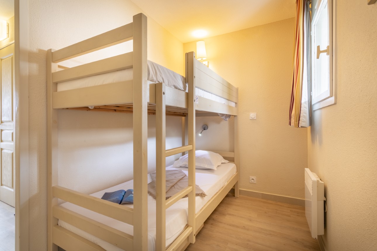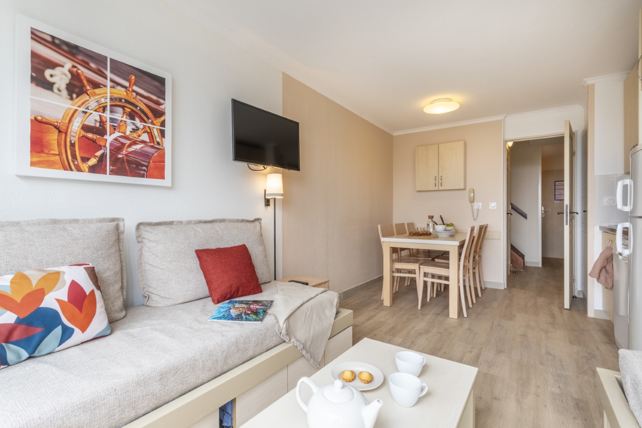 - Kenmerken van de woonkamer: 2 dagbedden, waarvan één met een uitschuifbed (aangeraden voor kinderen), en 1 slaapnische met stapelbedden (aangeraden voor kinderen)