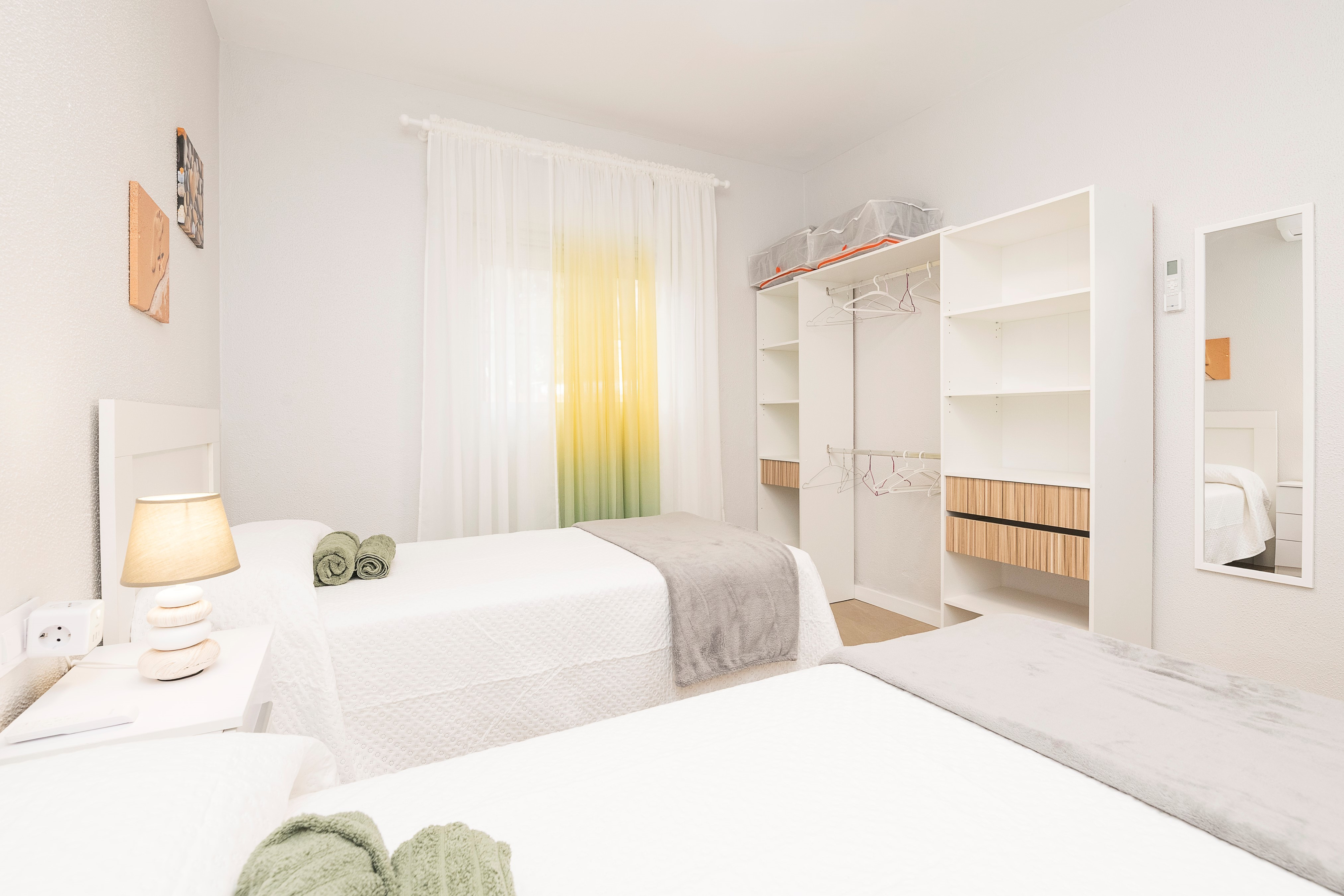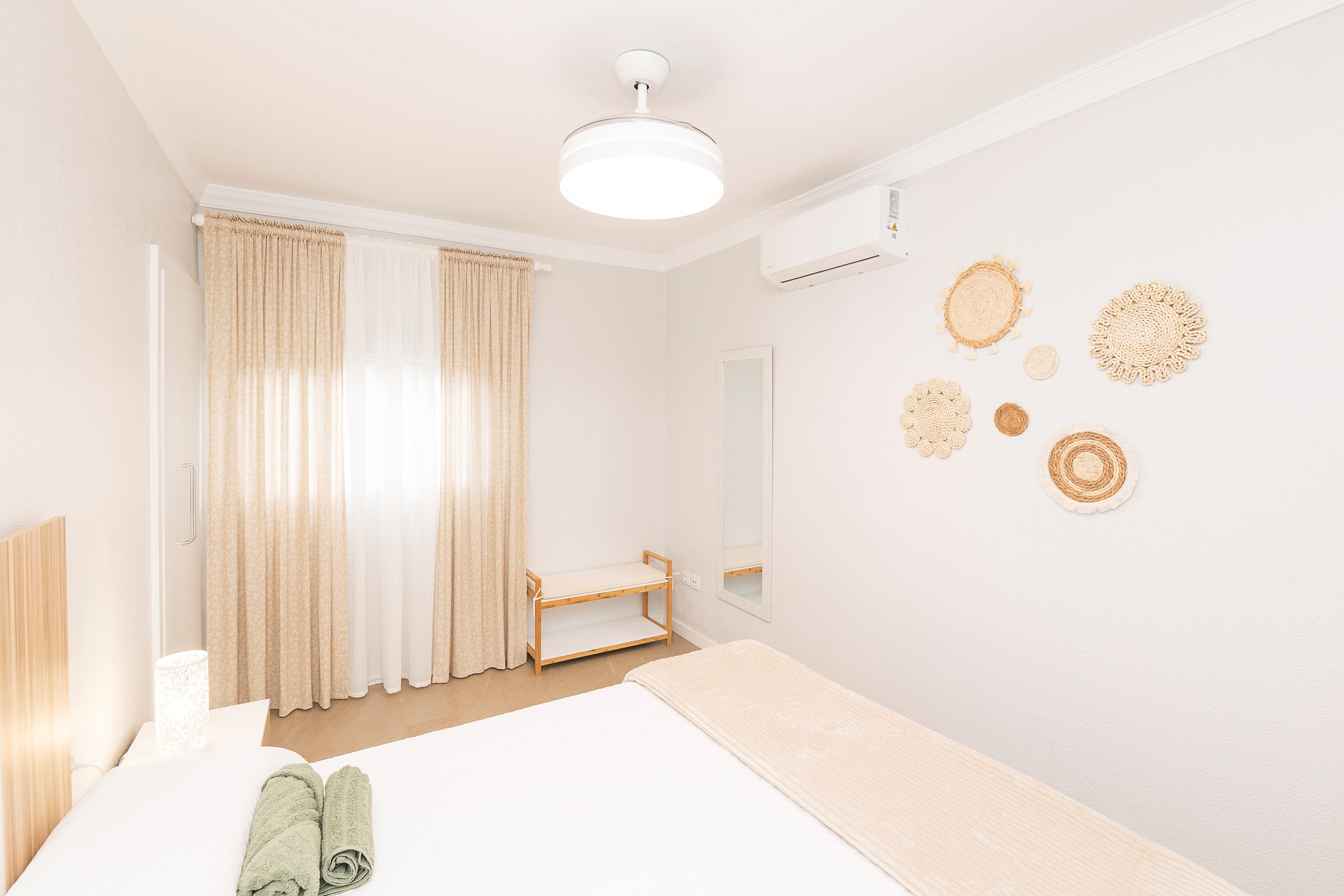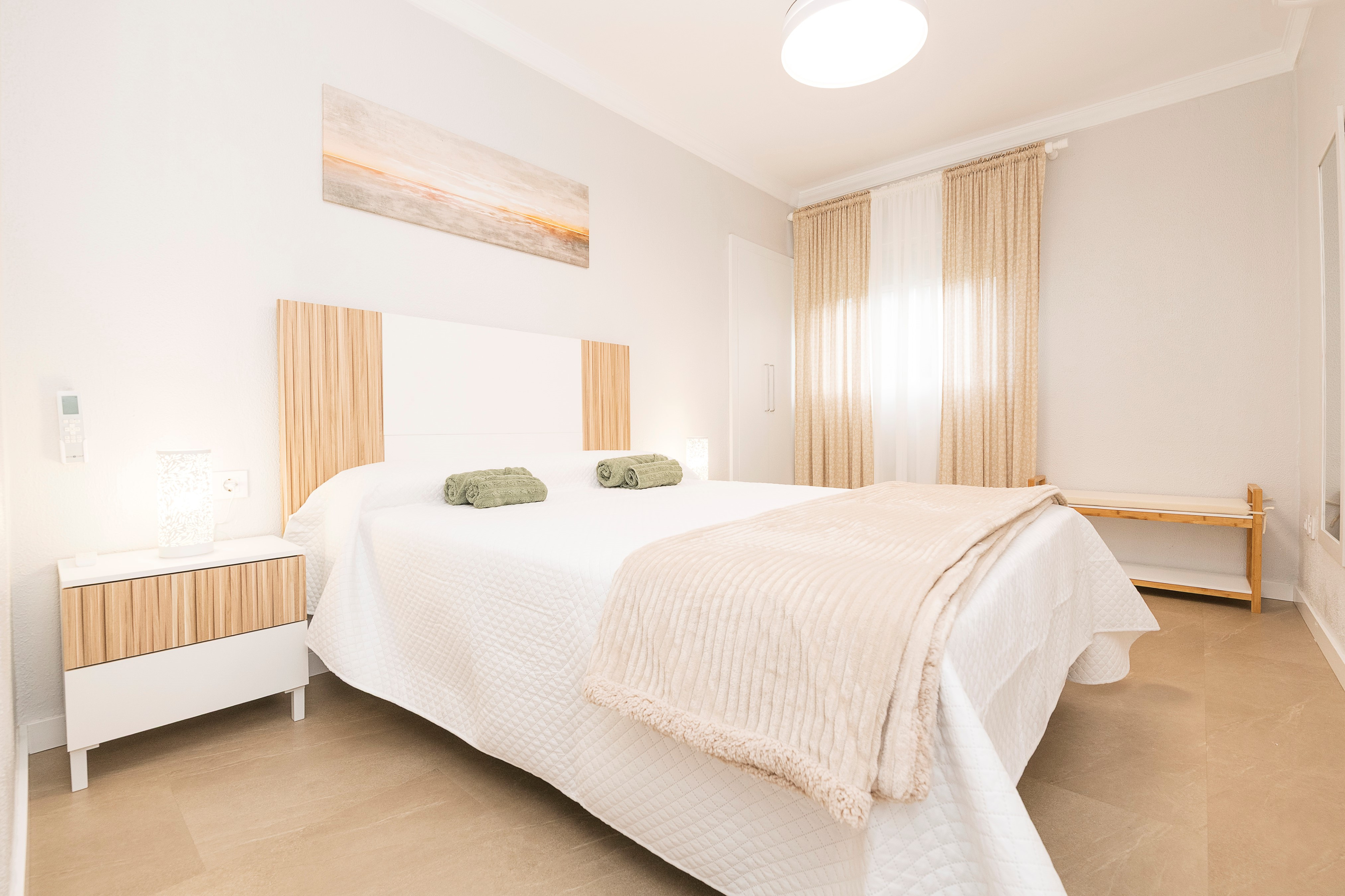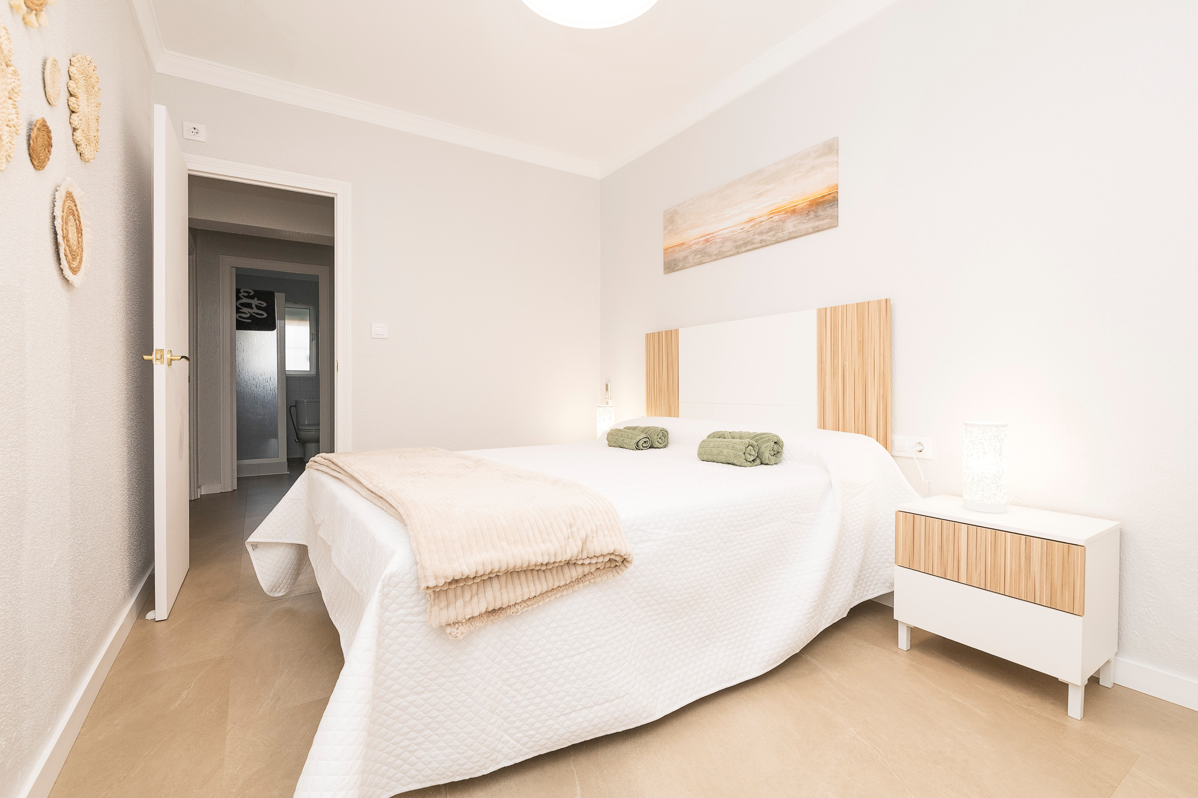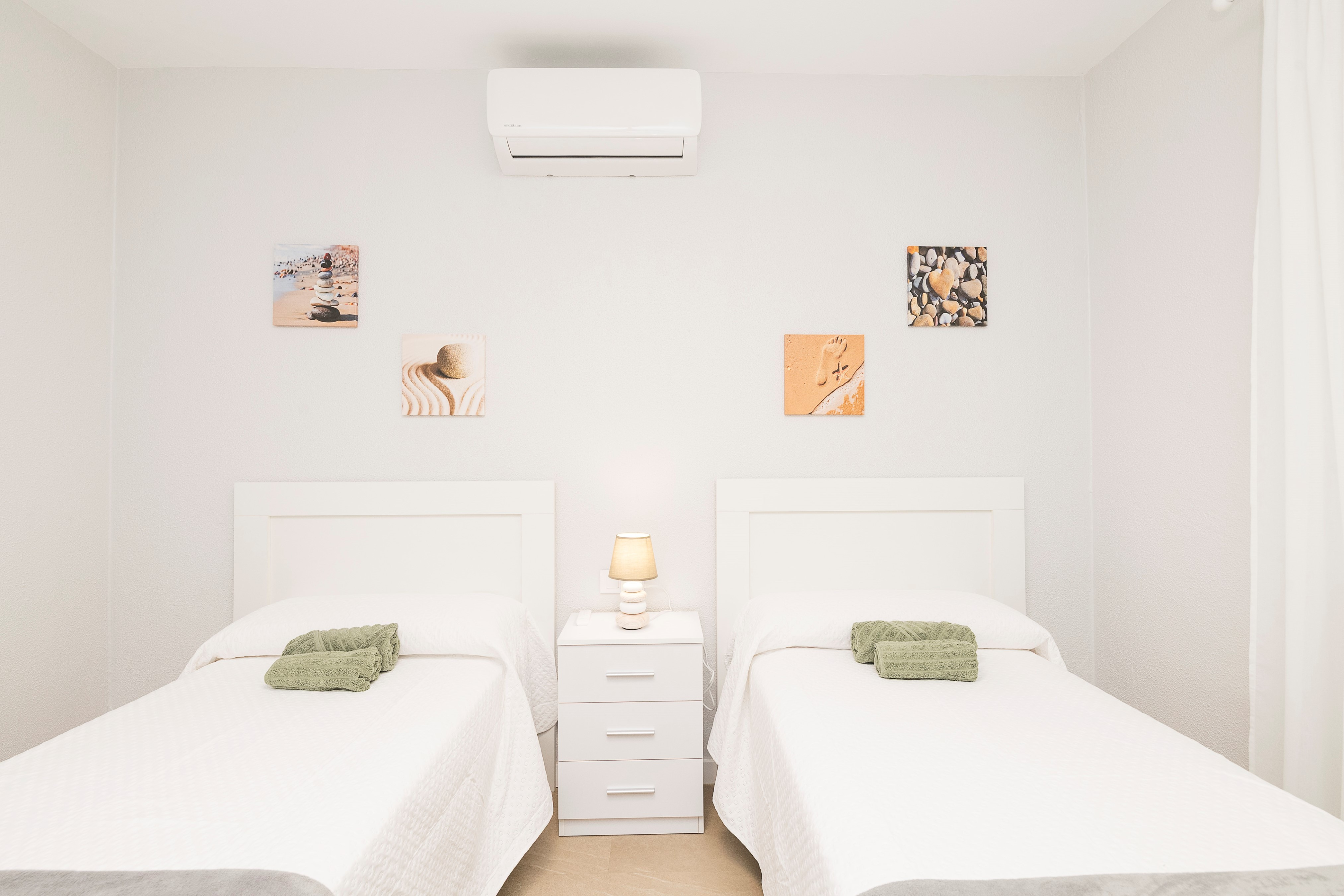 De woning biedt plaats aan maximaal 6 gasten in drie slaapkamers met airconditioning: één met een tweepersoonsbed en twee met elk twee eenpersoonsbedden. Er zijn ook twee moderne badkamers met douche.