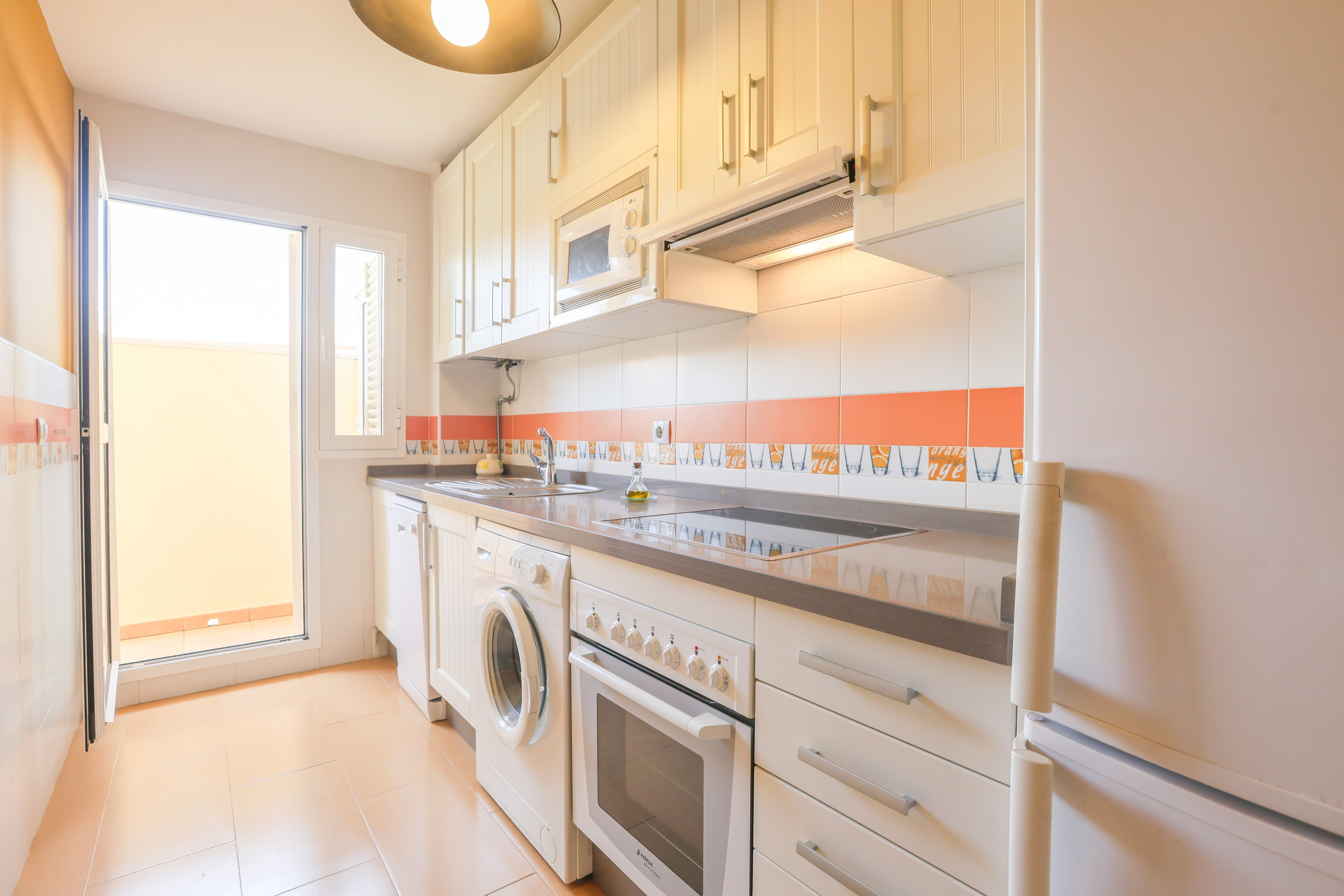 De keuken beschikt over een keramische kookplaat en is volledig uitgerust met alle benodigde keukengerei, zodat je comfortabel kunt koken en je thuis kunt voelen. Extra voorzieningen zoals een wasmachine, strijkijzer en strijkplank zijn ook aanwezig.