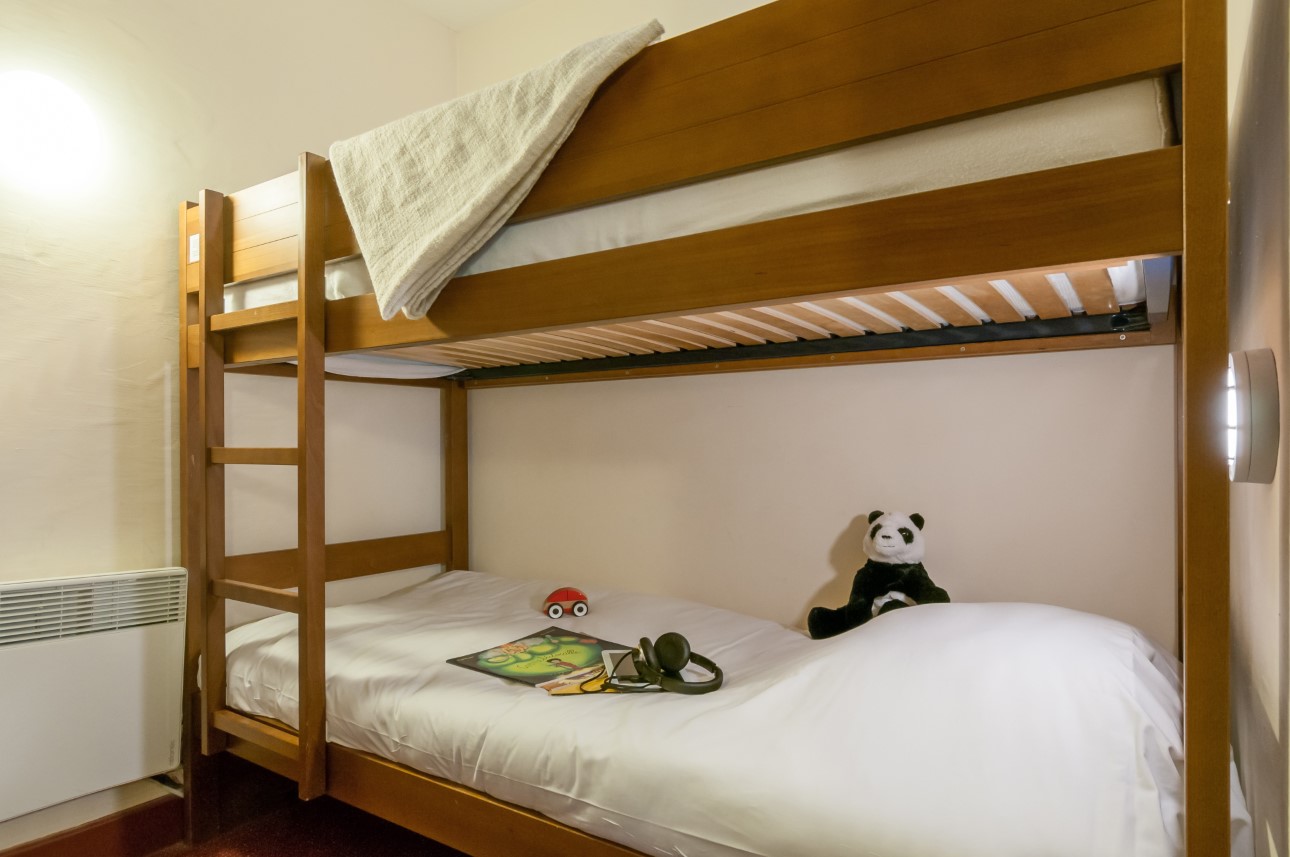 - Woonkamer: Voorzien van een tweepersoons slaapbank en een slaapplek met stapelbedden (aanbevolen voor kinderen)
