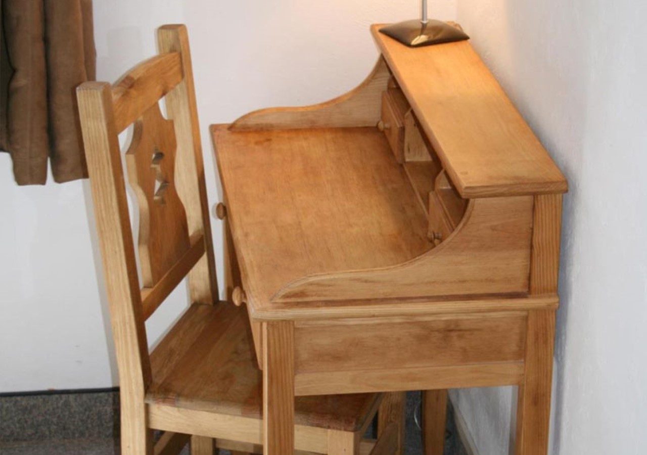 Een tweepersoonsbed (140 cm), badkamer