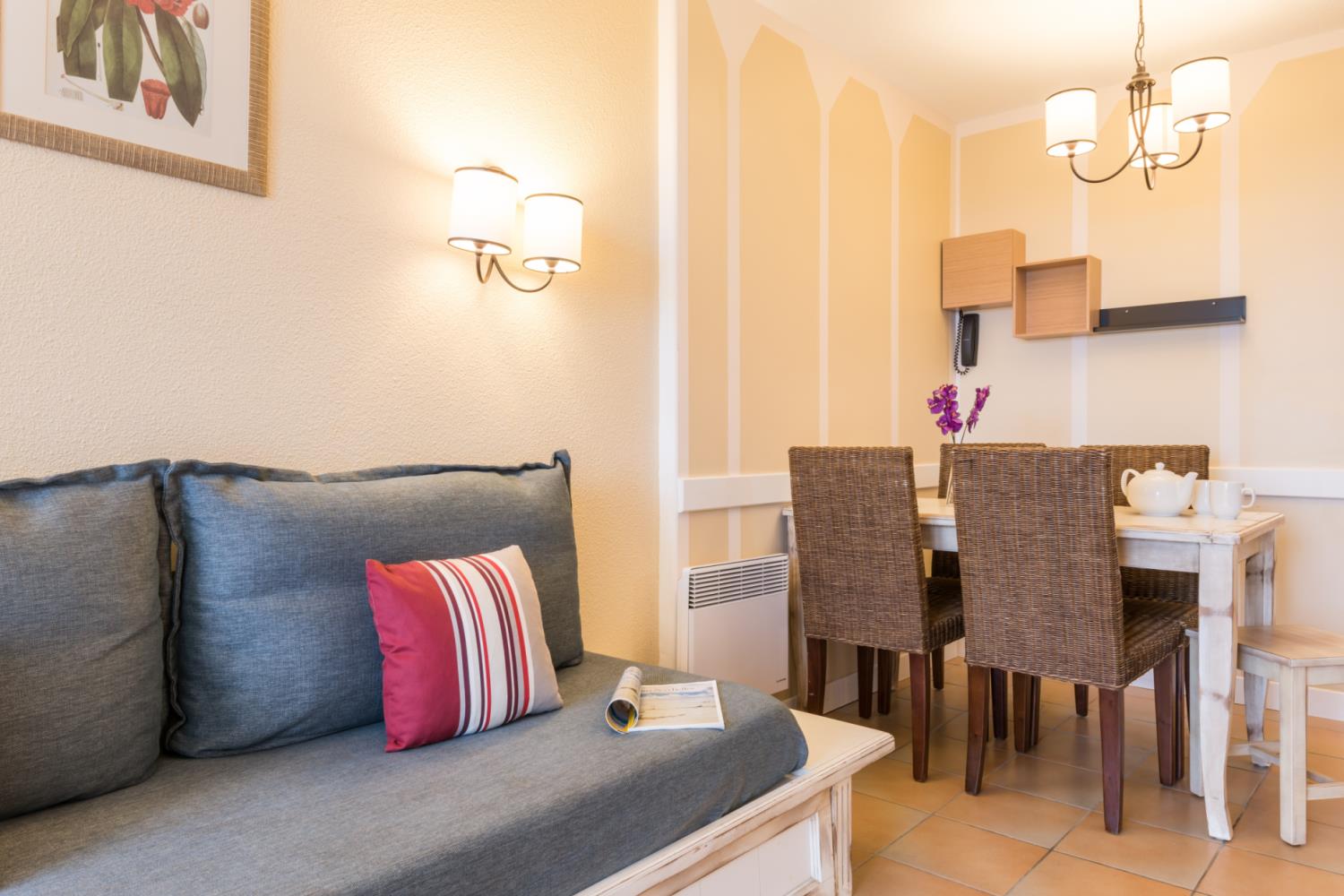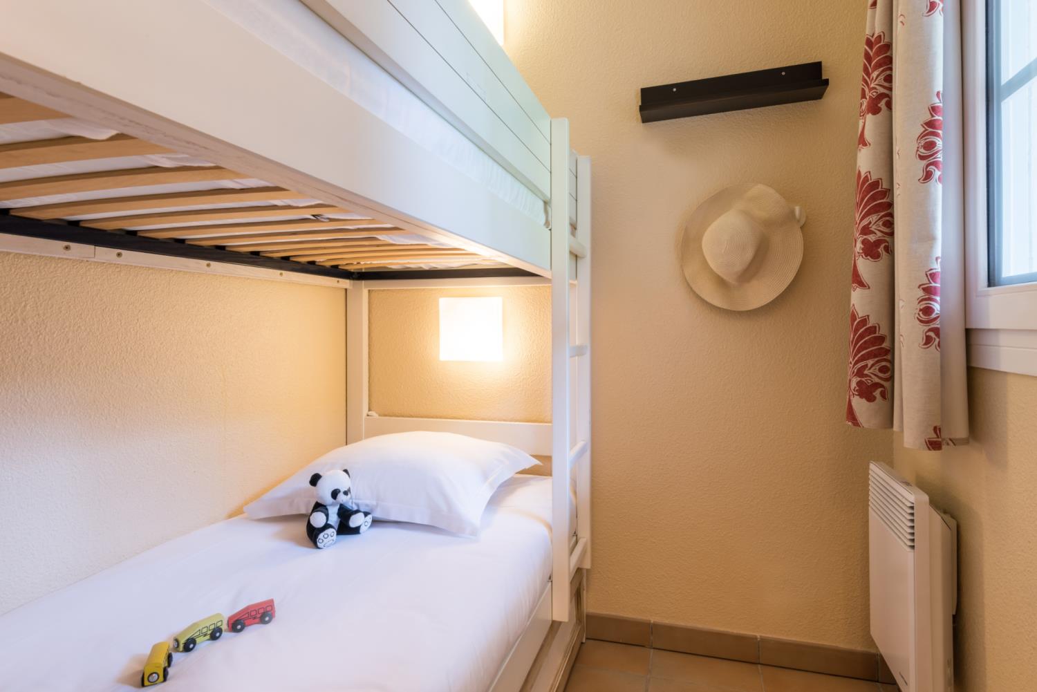 • Voorzieningen van de woonkamer: 2 dagbedden, waarvan één met een uitklapbed (aanbevolen voor kinderen), en 1 slaaphoek met stapelbedden (aanbevolen voor kinderen)