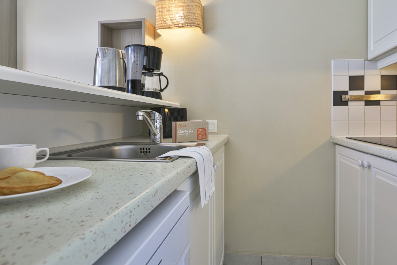 - Keukenkenmerken: Volledig uitgeruste open kitchenette en woonruimte.