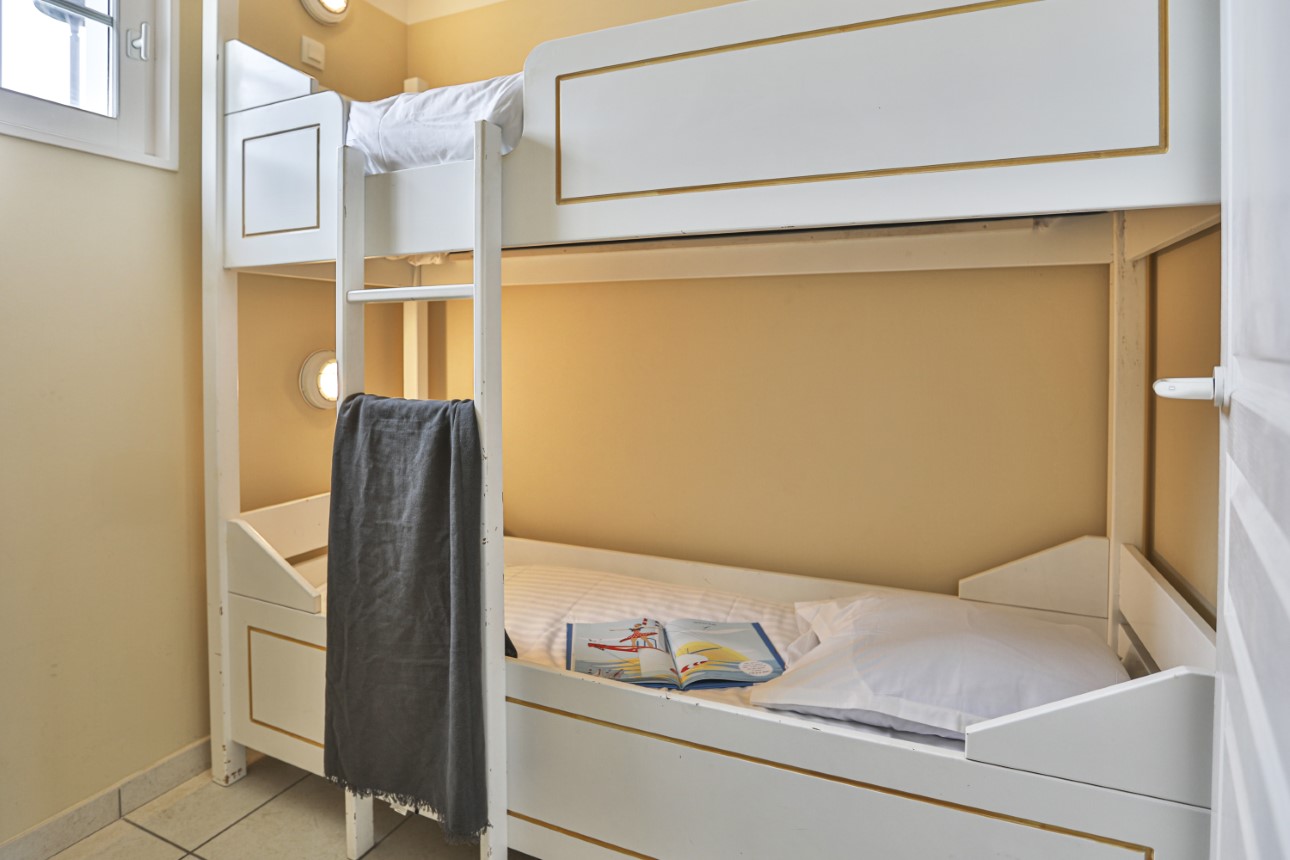 - Kenmerken van de woonkamer: 1 slaapbank (160 cm) en 1 slaapniche met stapelbedden (aanbevolen voor kinderen).