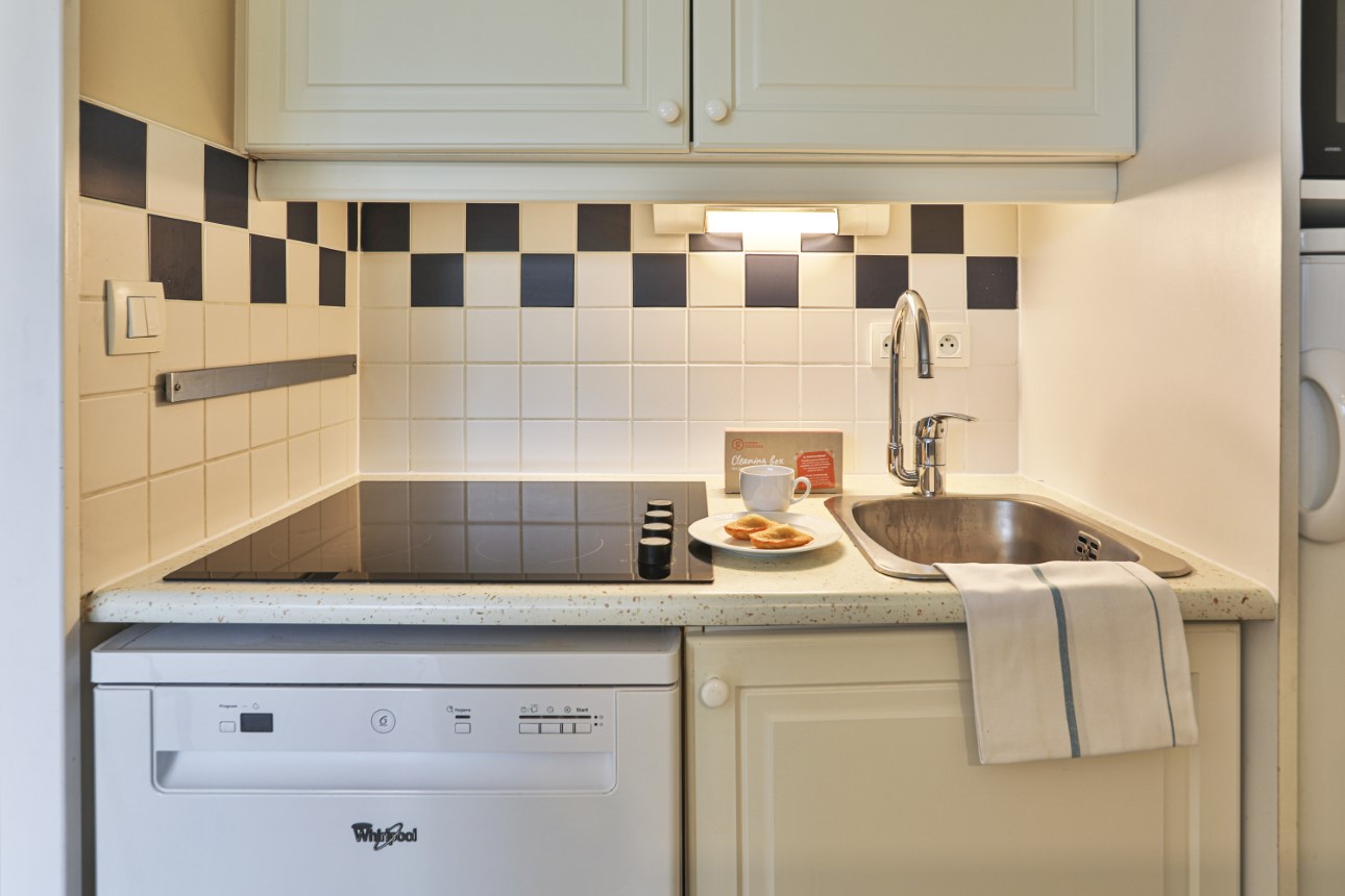- Kenmerken van de keuken: Volledig uitgeruste open kitchenette en woonruimte.
